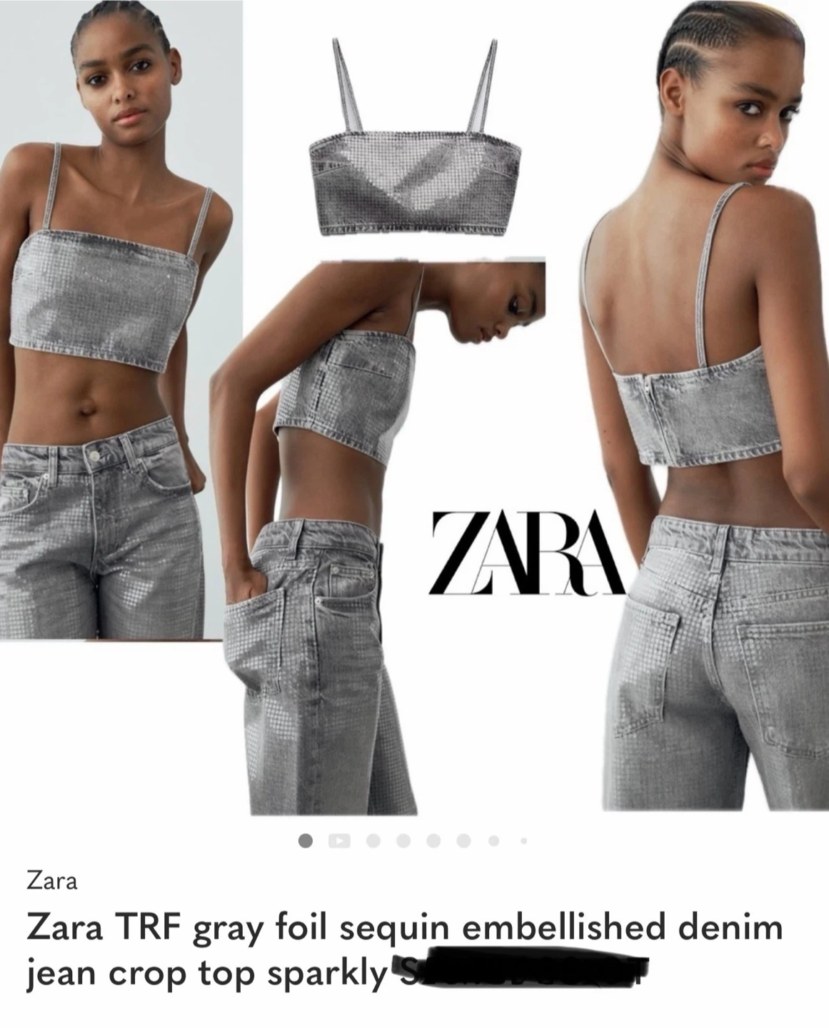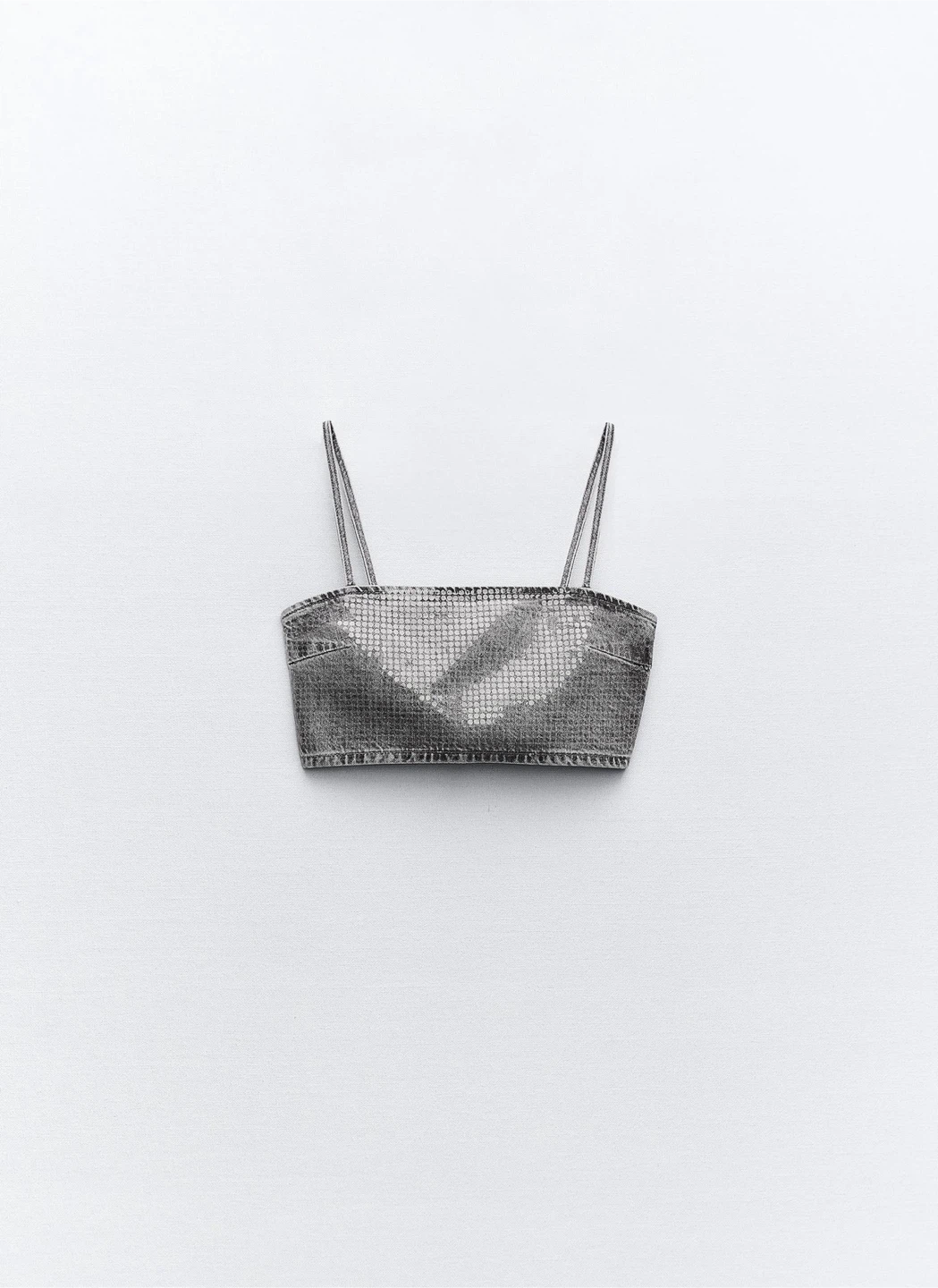 Zara TRF Grey Foil Sequin Denim Jean Crop Top