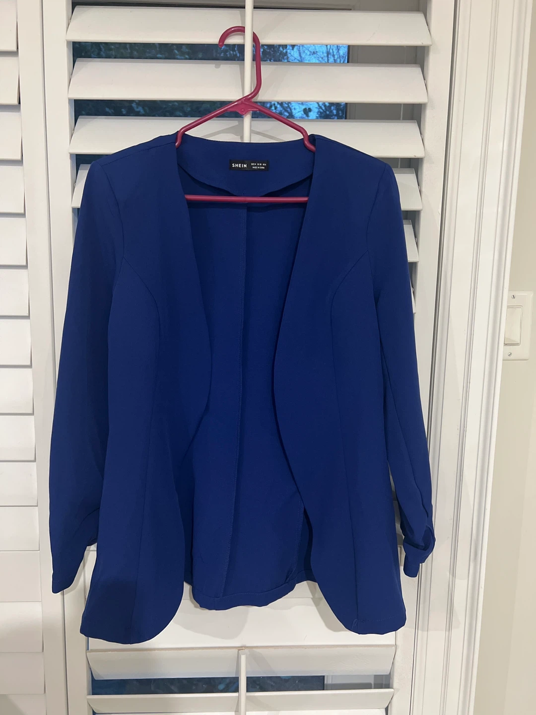 Selling a stylish blue blazer from SHEIN in size XS. It's in great condition and perfect for dressing up or down! The material is comfortable and the colour is a vibrant blue