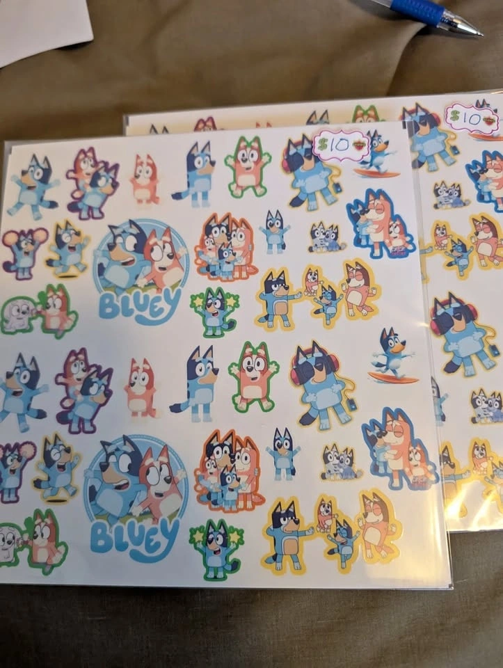 Durable Bluey & Bingo kiss-cut stickers! They're laminated, waterproof, and dishwasher safe, perfect for bottles & more. Weatherproof: waterproof, scratch-proof, and car wash approved. UV Resistance: clear laminate coating keeps colors vibrant, no fading.