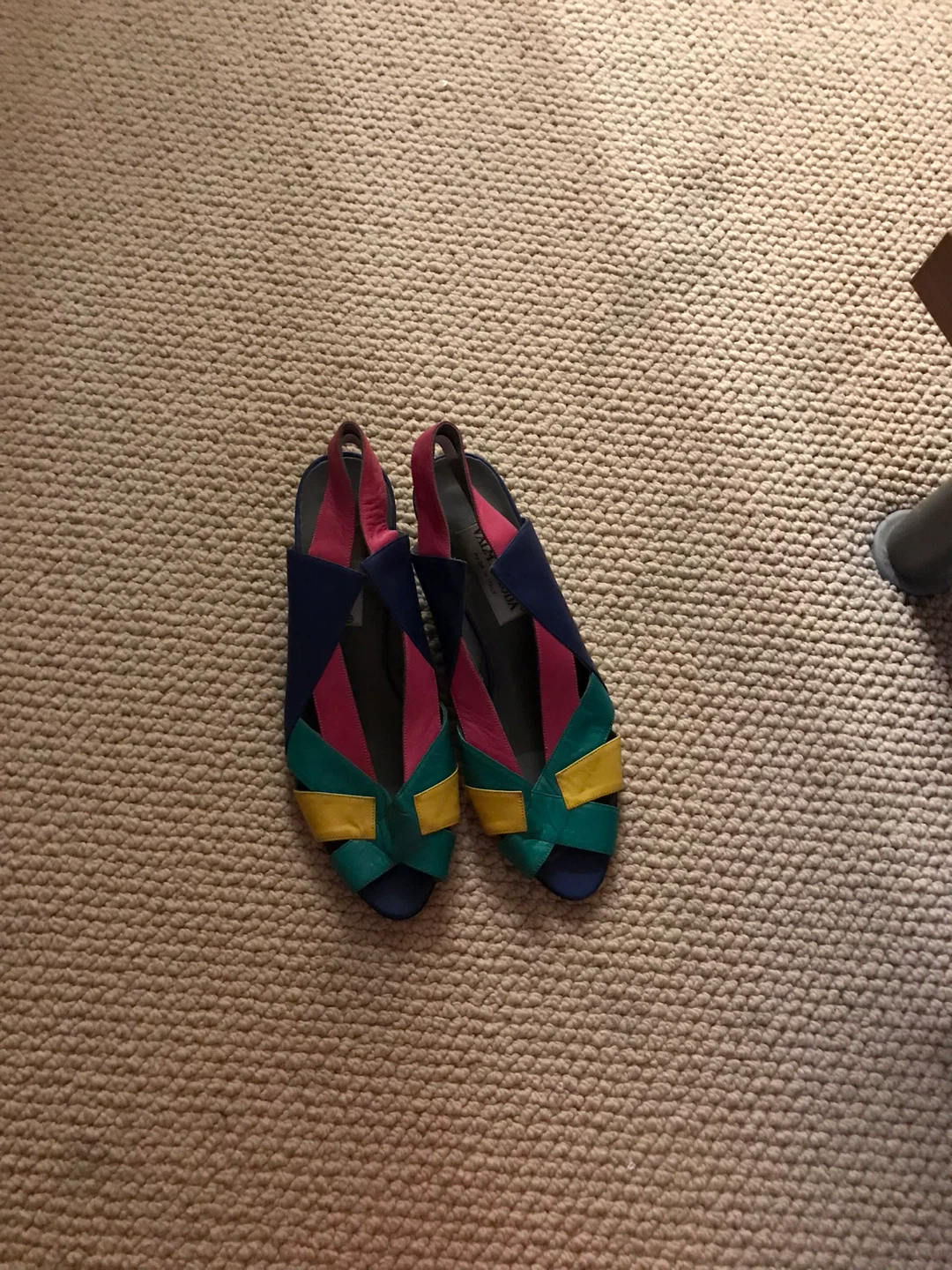 Chic Italian leather sandals in a vibrant colour design. Features a comfortable block heel and a secure strap. Size small 36. Was never worn. Original and elegant.
