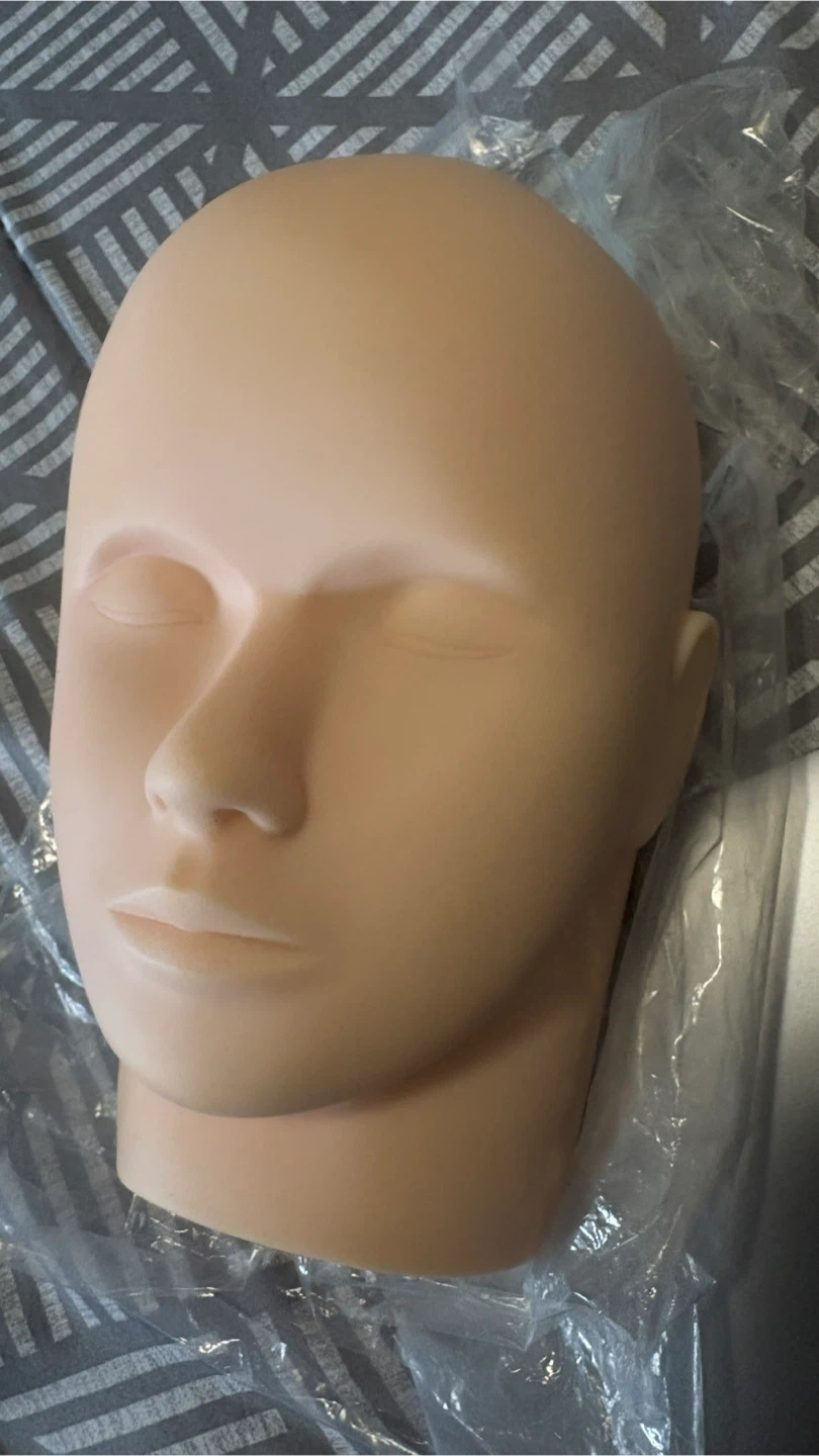 This is a versatile mannequin head for practicing eyelash extensions. It's made of soft, realistic PVC material. Its neutral expression is great for detailed work.