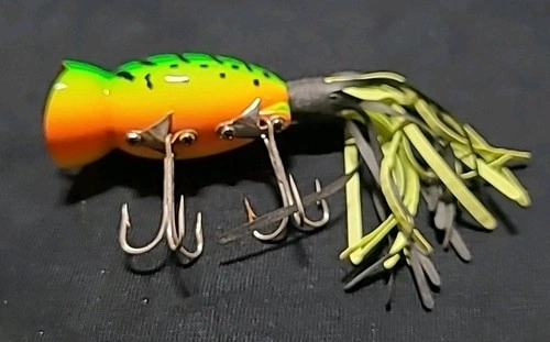 Elevate your freshwater fishing game with the Arbogast Hula Popper G750 in the striking Firetiger color. This topwater bait is a go-to choice for anglers targeting a wide variety of species including Bass, Salmon, Trout, Muskie, American Angler, Striper, and Northern Pike. The frog-shaped bait, crafted from durable plastic, features a unique pulsating skirt that ensures maximum disturbance and a cupped lip for displacement, mimicking the action of a live frog on the water surface. The Hula Popper is designed to float, allowing you to fish it just below the surface. Weighing in at 5/8 oz, it’s perfectly balanced for casting and retrieval. With its positive buoyancy, this lure is ready to swim right alongside you as you reel in your next big catch.
