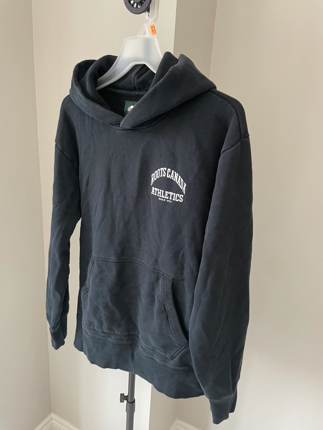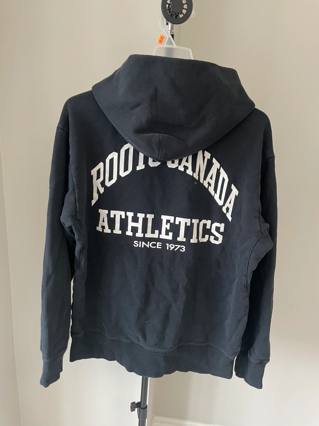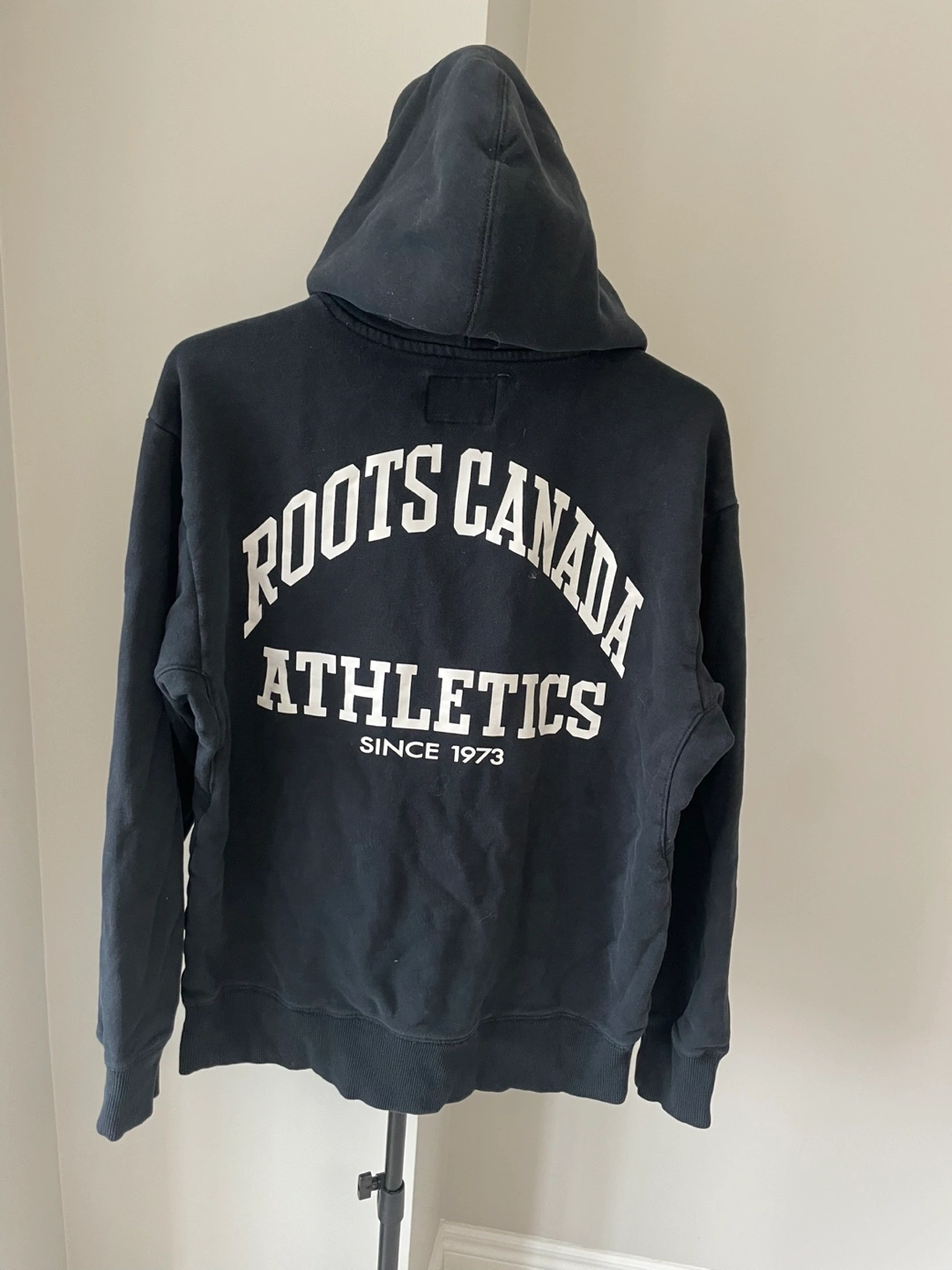 This is a black Roots Canada Athletics hoodie. It's a size XS/TP. Made in China.