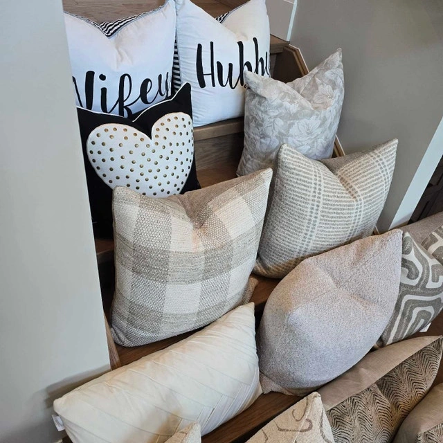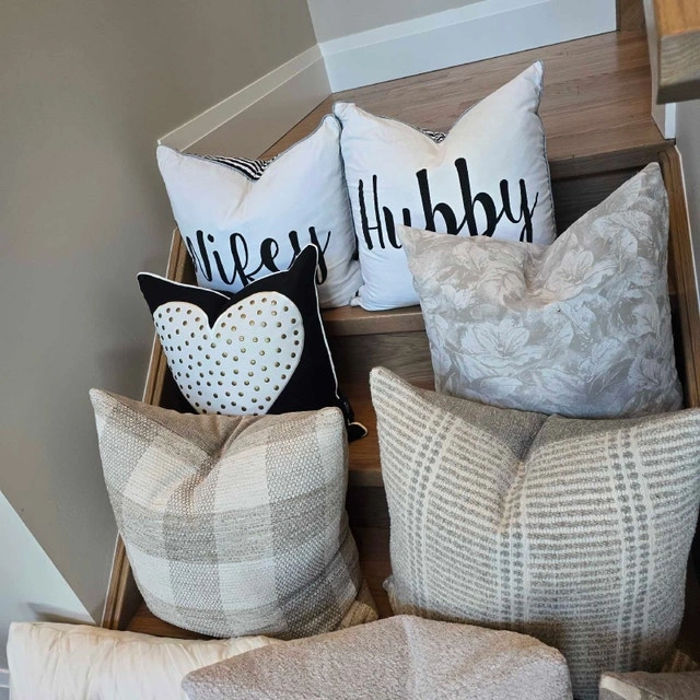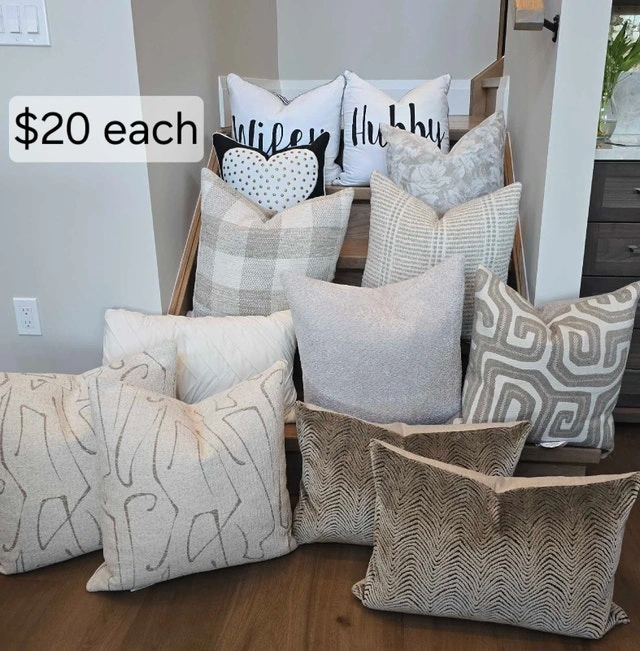 Beautiful selection of pillows, different patterns and textures. Enhance the aesthetic of your living space with a selection of decorative pillows. Each piece designed to bring both comfort and style to any room. Discover a variety of textures and patterns that will perfectly complement your existing decor. These charming accents are an ideal way to refresh your home's ambiance. Explore the collection and find the perfect additions to elevate your surroundings. See photos for prices. More items for sale. Please see my page.