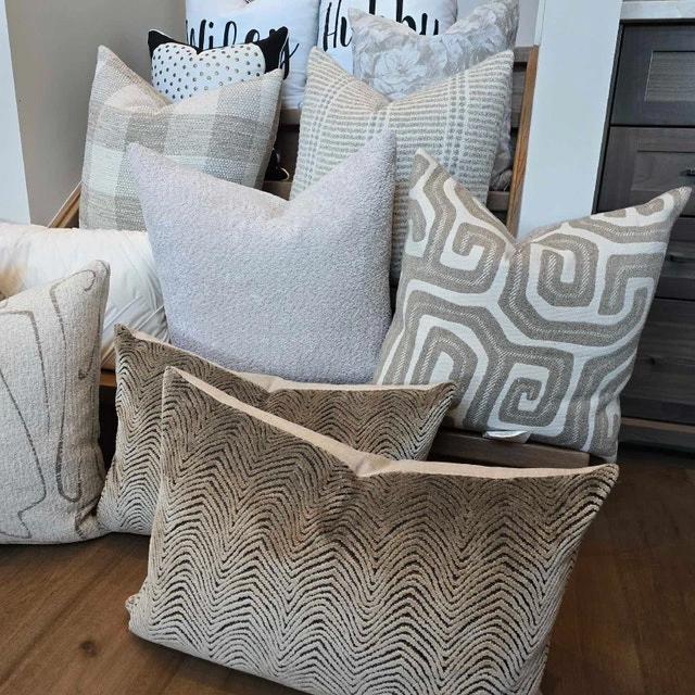 Beautiful selection of pillows, different patterns and textures. Enhance the aesthetic of your living space with a selection of decorative pillows. Each piece designed to bring both comfort and style to any room. Discover a variety of textures and patterns that will perfectly complement your existing decor. These charming accents are an ideal way to refresh your home's ambiance. Explore the collection and find the perfect additions to elevate your surroundings. See photos for prices. More items for sale. Please see my page.