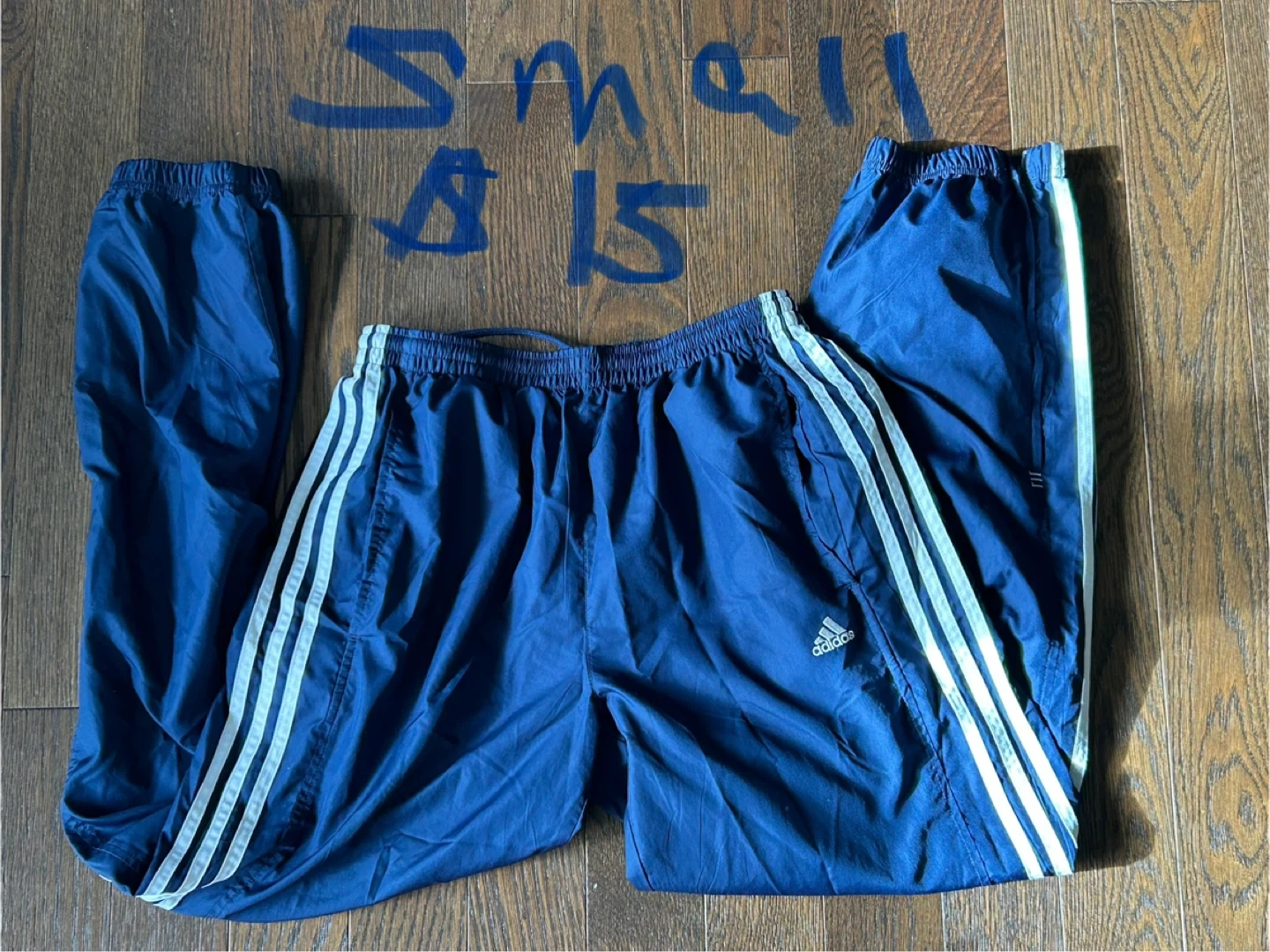 Selling a pair of Adidas track pants in size small. They're a nice navy blue colour with the classic Adidas stripes. Perfect for workouts or just lounging around!