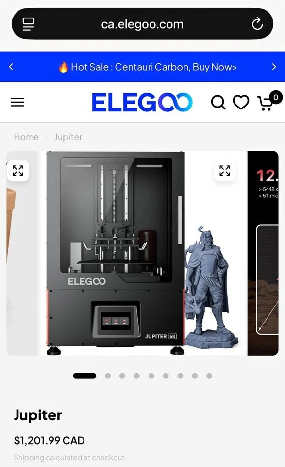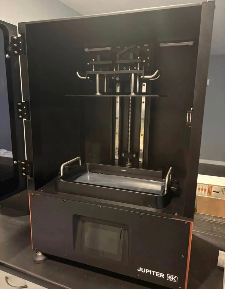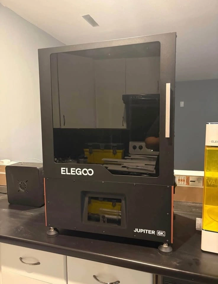 Elegoo Jupiter resin 3D printer. Comes with active carbon air filter for the chamber. The X-wobble fix has been applied to ensure tall prints come out perfect. Includes Elegoo toolkit, drip hook for the platter, and auto-refill resin cap for long prints. Used a few times for a custom Xbox faceplate project, but no longer working on that and using my Saturn for model prints instead. Would trade for an xtool F1 or similar infrared laser. Must pick up.