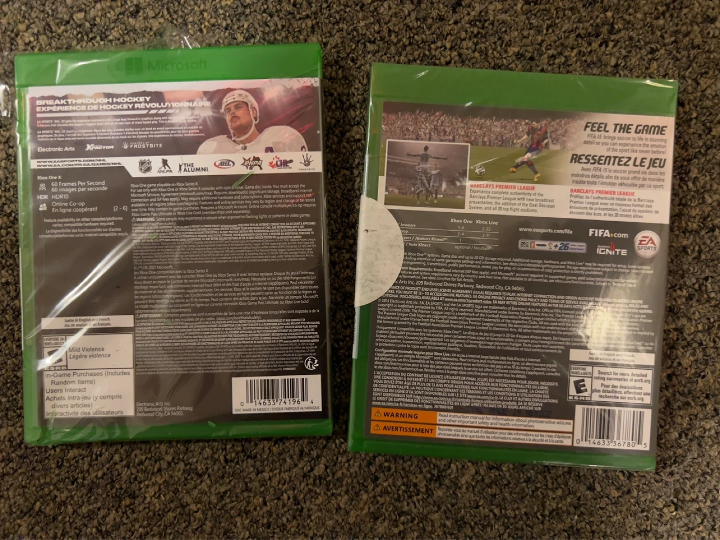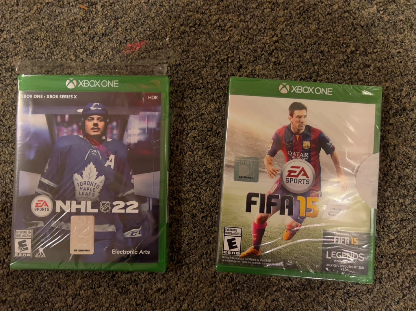 Buy & SellXbox One NHL 22 and FIFA 15 GamesXbox One NHL 22 and FIFA 15 Games$15Includes NHL 22 and FIFA 15 for Xbox One. Both games are in original packaging. $15 eachConditionNewWHERE TO MEETV7k2h4View MapSELLERLily Lynn valleyValley Centre836 reviews0 chats·0 favorites·1 viewsSEND CHAT TO SELLERHi Lily Lynn valley! I’m interested in your listing.Hi Lily Lynn valley! I’m interested in your listing.Get the Karrot app to chatSign In to chat