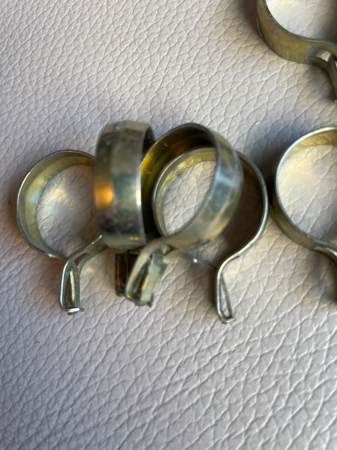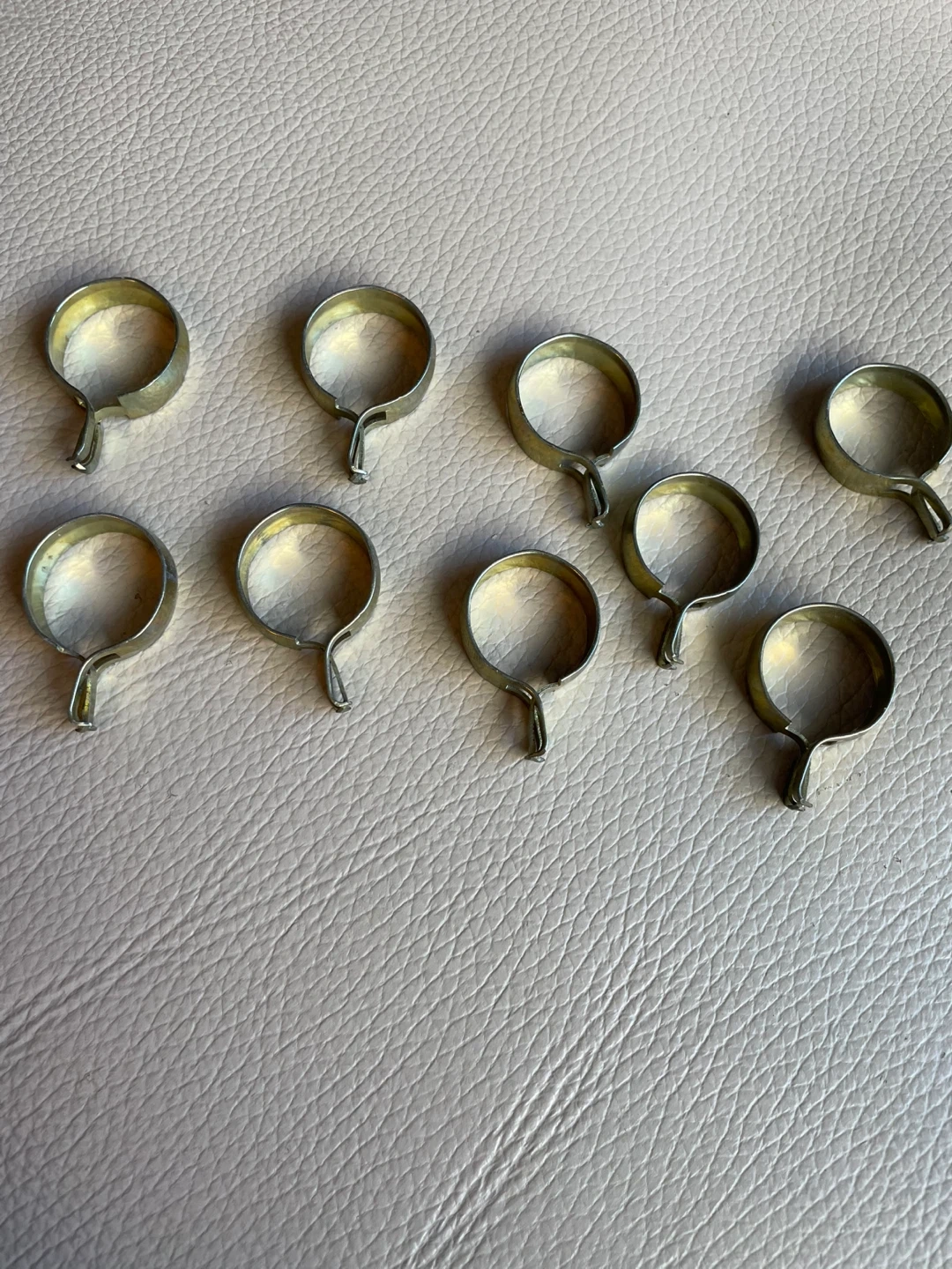 Selling nine small metal clips, suitable for hanging curtains or fabric. These clips are made of a durable brass metal material. They're perfect for quick adjustments or creating custom hanging solutions for your windows!