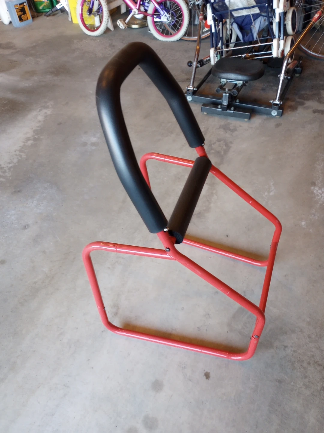 Set of adjustable hurdles designed for athletic training. Features a durable red metal frame with black padded handles. Each hurdle is approximately 24 inches wide.