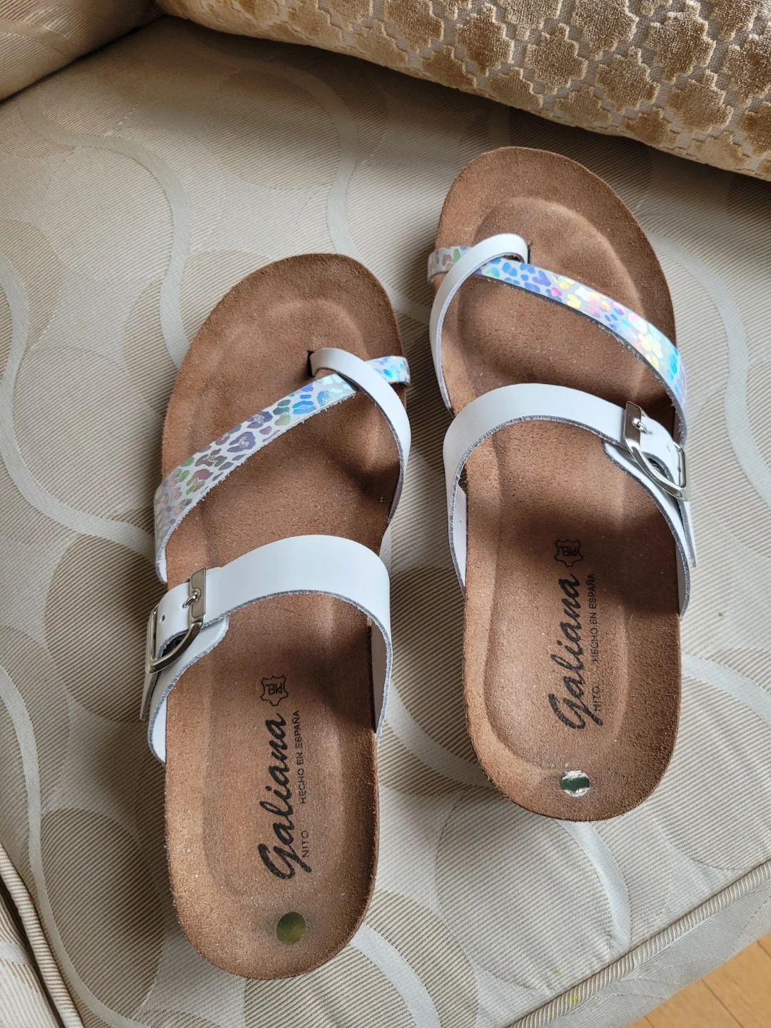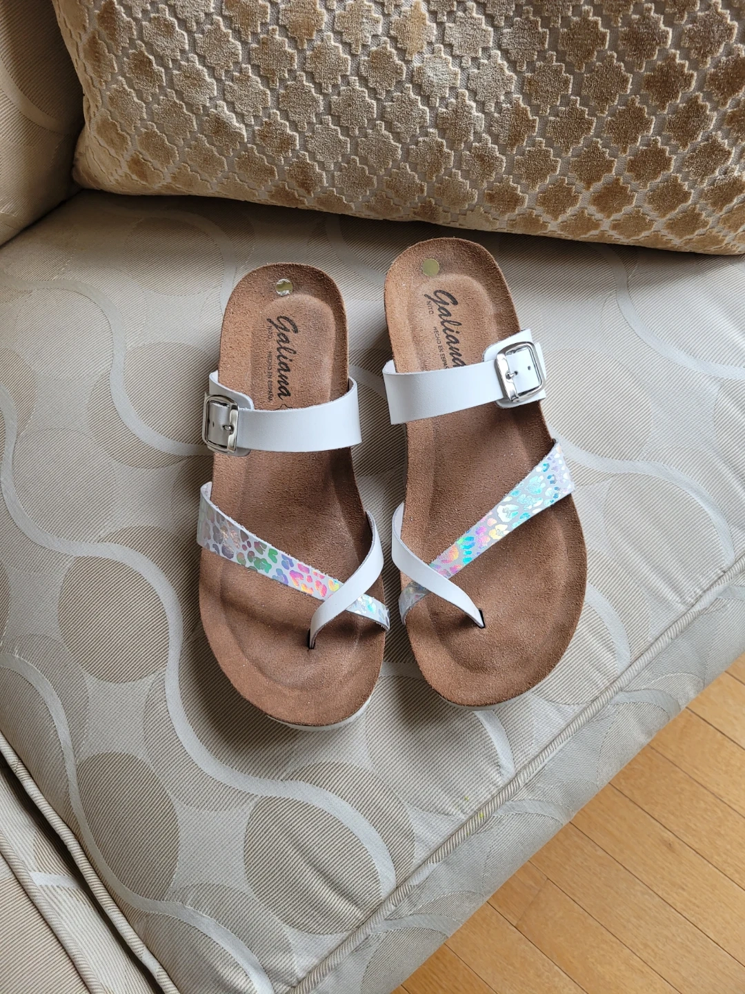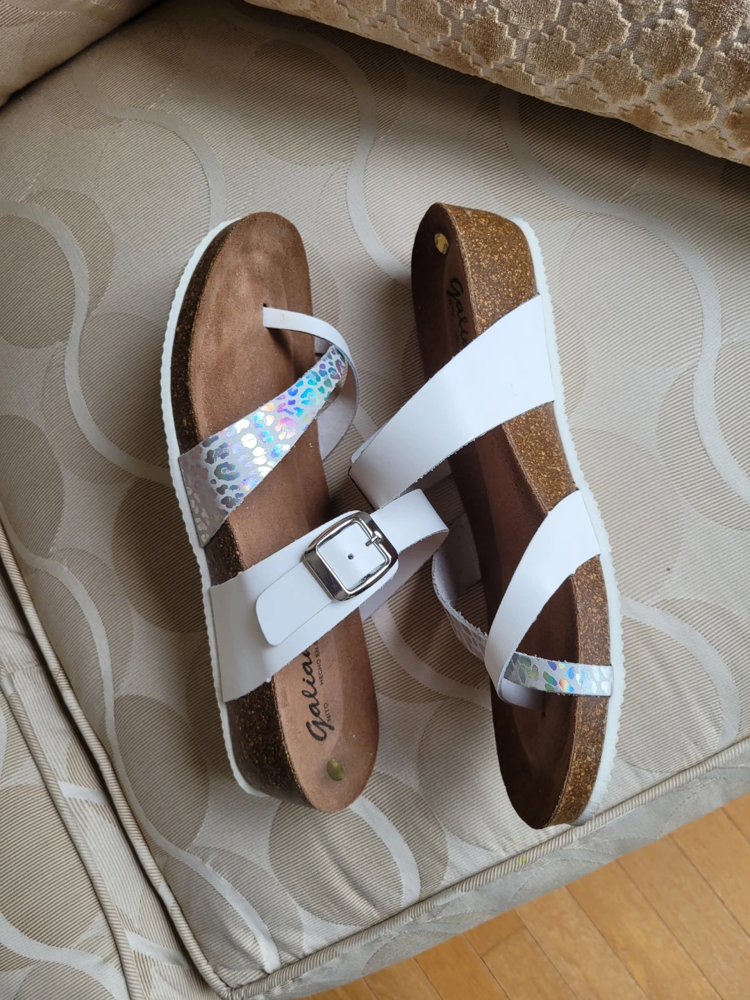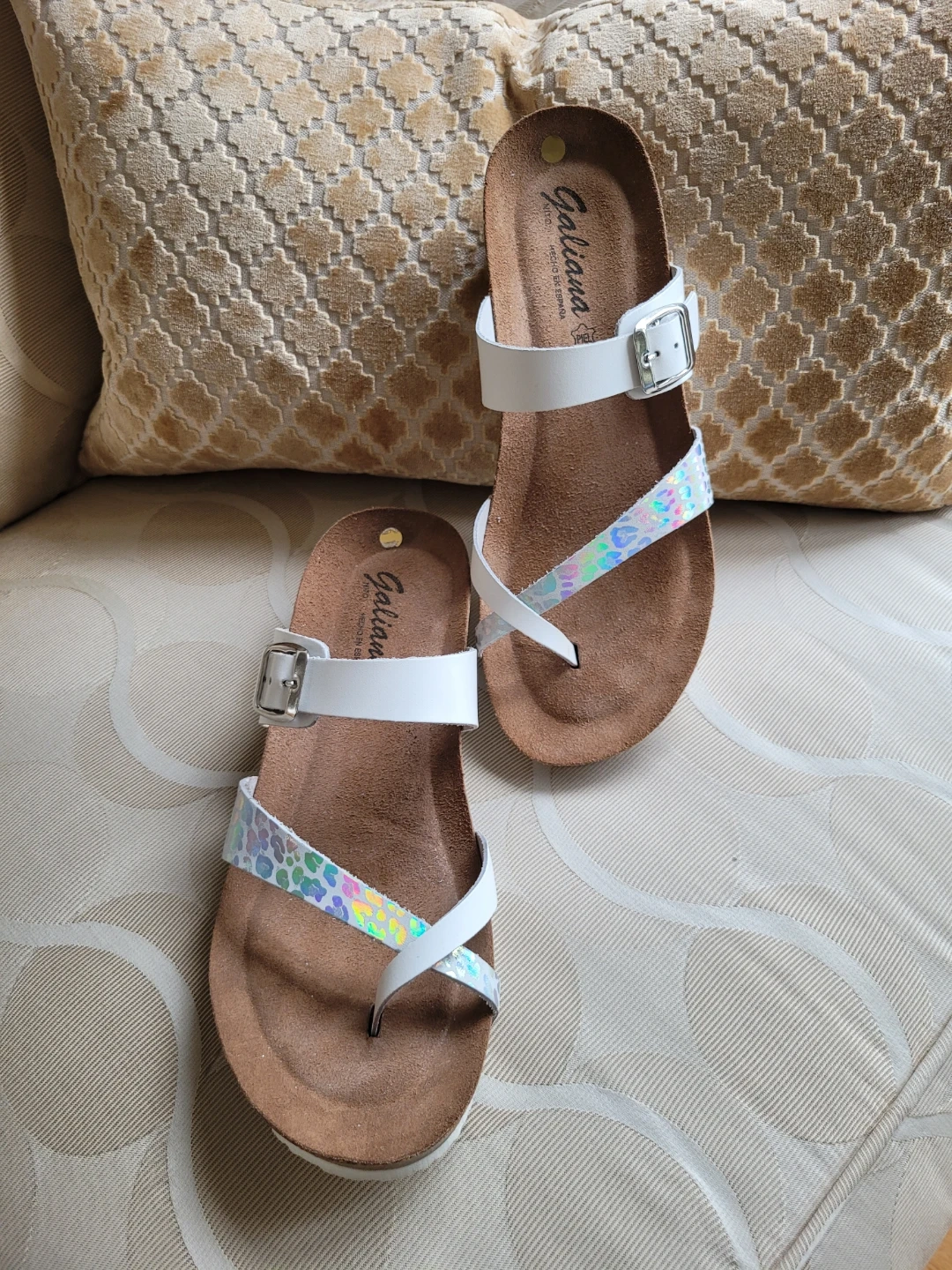 Galiana White & Iridescent Strap Sandals - Women's Size 9.5