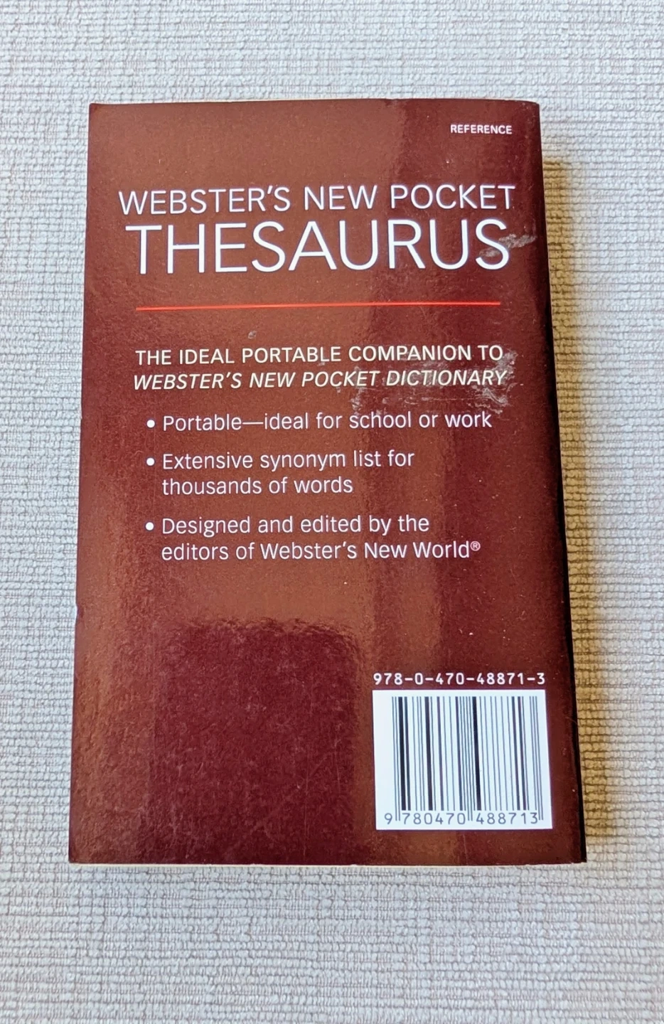 This portable thesaurus provides thousands of synonyms and antonyms. It's designed for easy use with an alphabetical order. It's ideal for school or work.