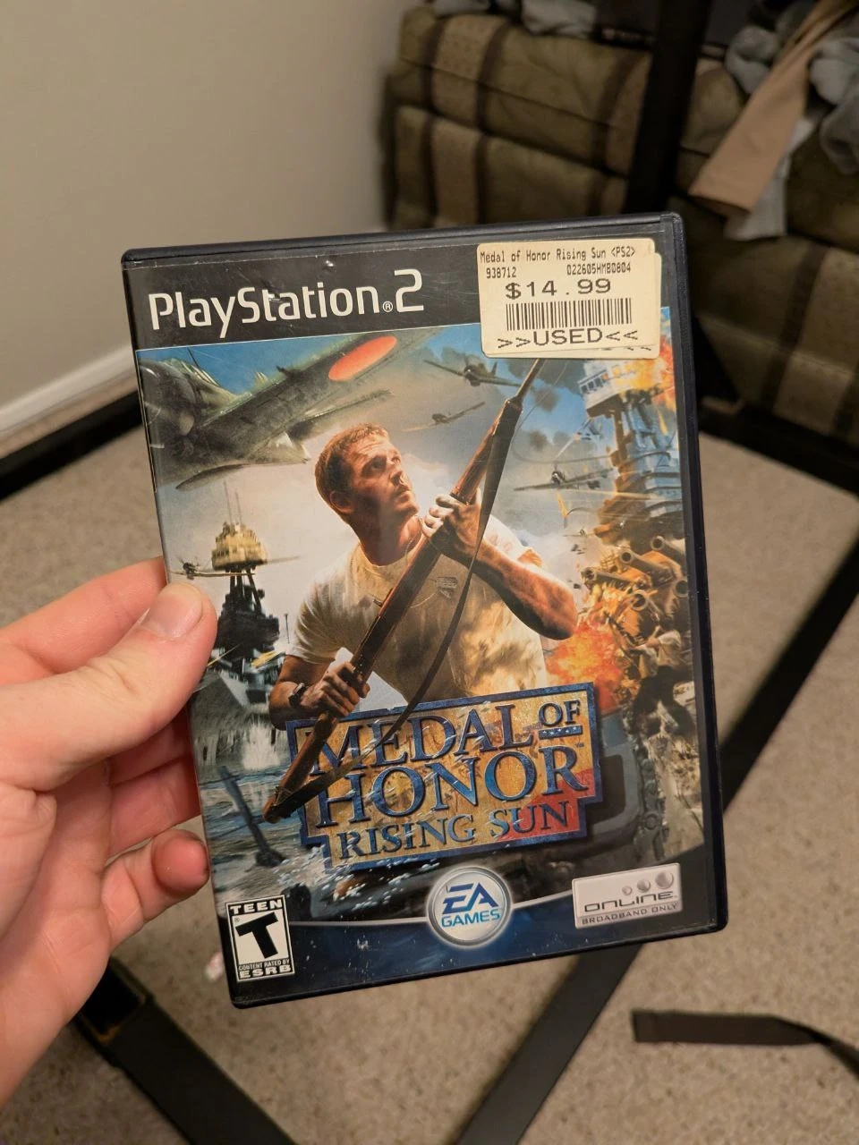 Five PlayStation 2 games: Medal of Honor: Rising Sun, Conflict: Desert Storm, Grand Theft Auto: San Andreas, SOCOM U.S. Navy SEALs, and Max Payne. Rated T for Teen and M for Mature.