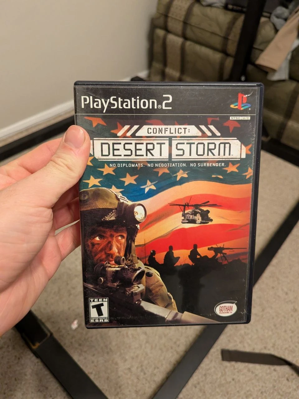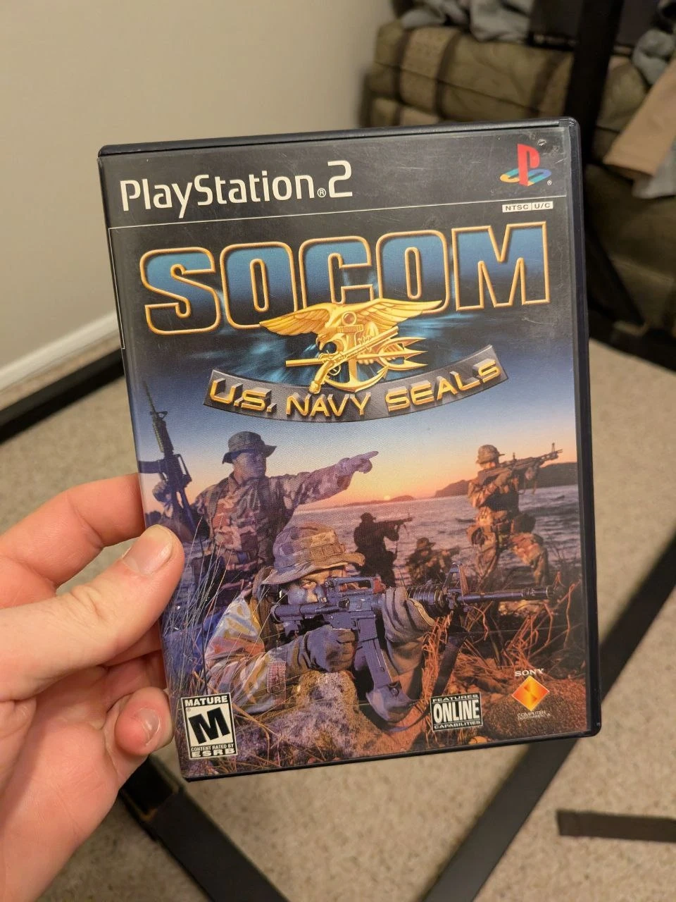 Five PlayStation 2 games: Medal of Honor: Rising Sun, Conflict: Desert Storm, Grand Theft Auto: San Andreas, SOCOM U.S. Navy SEALs, and Max Payne. Rated T for Teen and M for Mature.