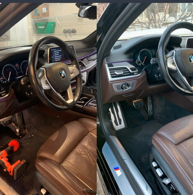 If you need your car interior detailing, you are at the right place because we are the professionals you need to do the job, while waiting at comfort of your home. We service Calgary, Cochrane, Airdrie, Okotoks, and all Calgary surrounding areas. SATISFACTION GUARANTEED! Our full interior packages rates : - Sedan car : 150$ -SUV car :170$ -Min van or 7 seaters car : 190$ - Trucks : 190$ - RVs : 240$ -Semi Truck :240$ In our packages we do : * Steam all surfaces ( Disinfect your car interior) *Clean cloth seats with steam and shampoo *Carpet Shampoo * vacuum the interior *Deodorize it *Vents clean *Windows clean *Door jam clean *Salt stain Removal *Clean leather and leather conditioner *Panel wipes *Vinyl Shine panels *Mats clean If your car needs extra touch because of the condition please feel free to reach to us before booking, so that we can talk about; - Extra filthy cars -Or if your car needs more touch on pet fur removal. For your booking please call David at 8258834499 or reply to the add :), you can also email at David@radaautodetailing.com