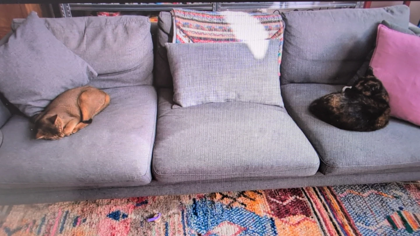 5Selling a comfy sofa! It's about 88 inches wide, perfect for a living room. The fabric is in great shape, cats do not scratch this fabric, removable cushions, down filled tops. High quality sofa, just doesn't fit in the place I moved to :/ retailed above $2000