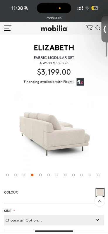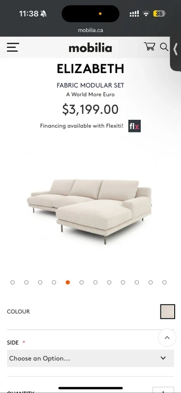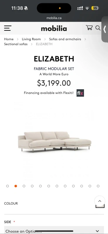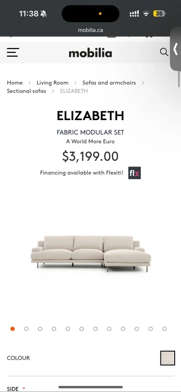 81Selling a Mobilia Elizabeth fabric modular set. This stylish sectional sofa is perfect for a living room. It's in great shape and ready for a new home! Originally bought for $3,199.00 in March 2025 and has a protection plan.