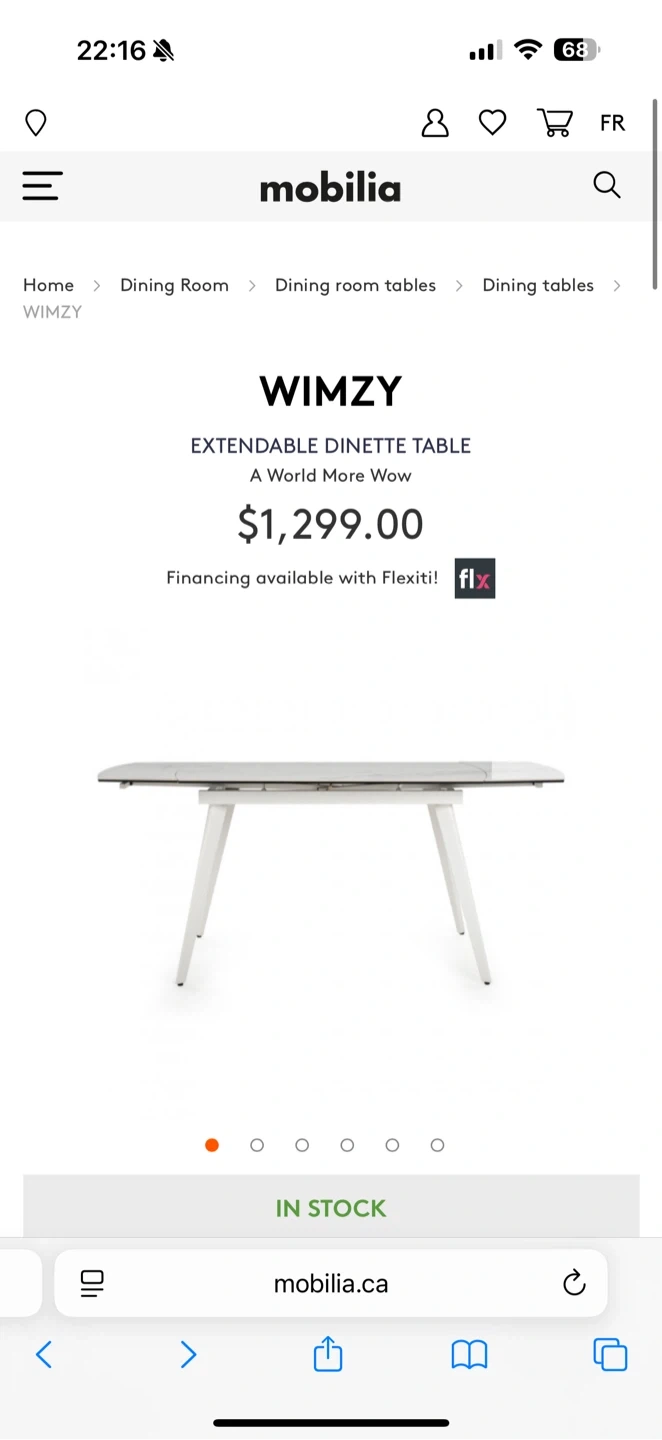 Selling a Mobilia Wimzy extendable dining table. It's a beautiful table that would look great in any dining room. Originally priced at $1,299.00 price negotiable