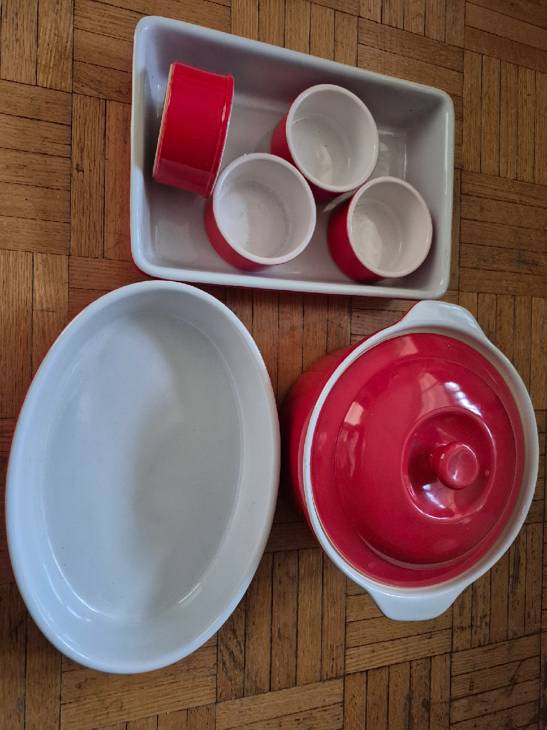 10Selling a set of Moda Concept quality stoneware baking dishes. includes a rectangular 10.5 in baking dish, an oval 10.5 in baking dish, a lidded round casserole dish, and four ramekins. All pieces are in great shape. $25 firm cash only Midtown Toronto *can meet at yonge/st Clair or st Clair west subway*