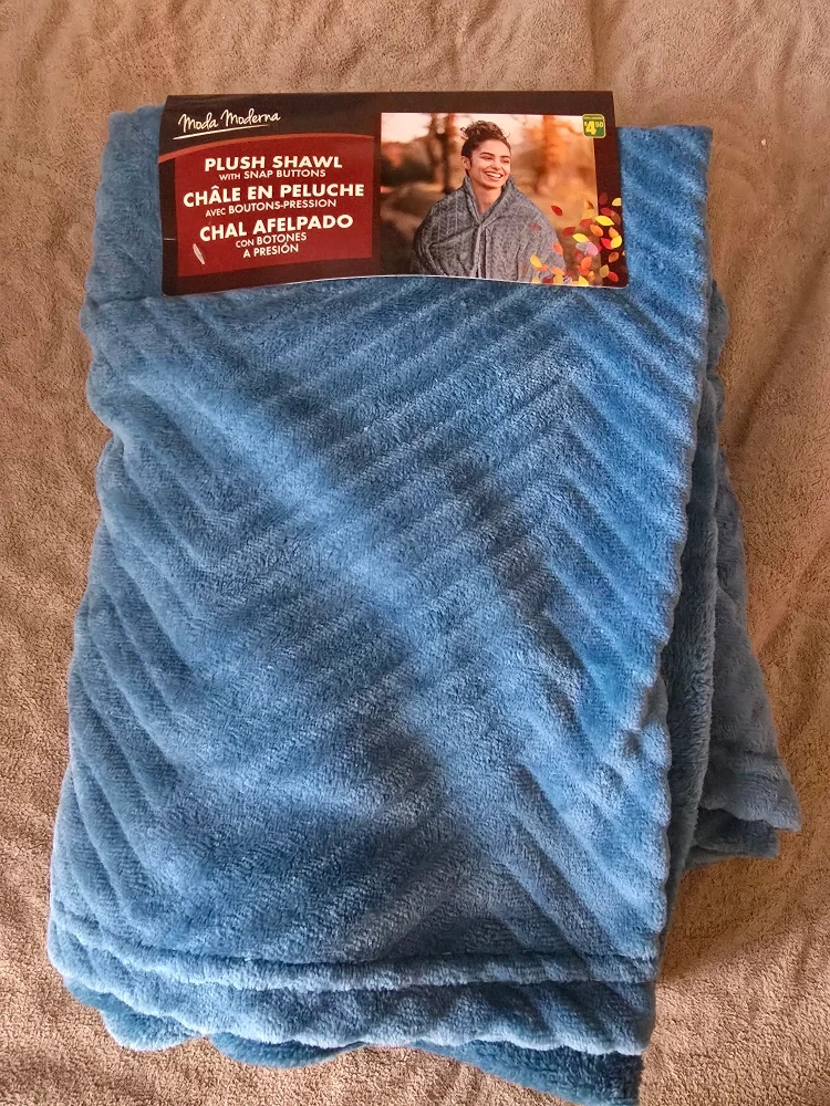 65Snuggle up in this cozy Moda Moderna plush shawl! It features snap buttons for easy wear and a secure fit. Perfect for chilly evenings or adding a touch of comfort to your day Payment options are e-Transfer or cash. Pick up only.