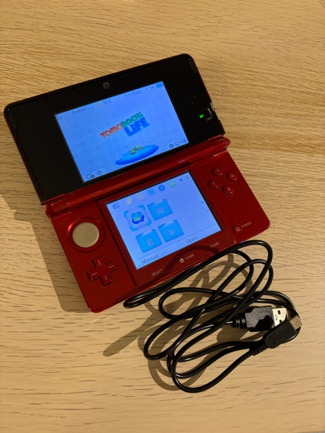 81Selling a red Nintendo 3DS. It has some wear and tear around the edges, but it's still fully functional and ready for a new home! Comes with a charger so you can start playing right away! Modding and download games upon request (2GB SD card) + $20 Stylus missing but I can throw in a replacement (can’t fit in the console)