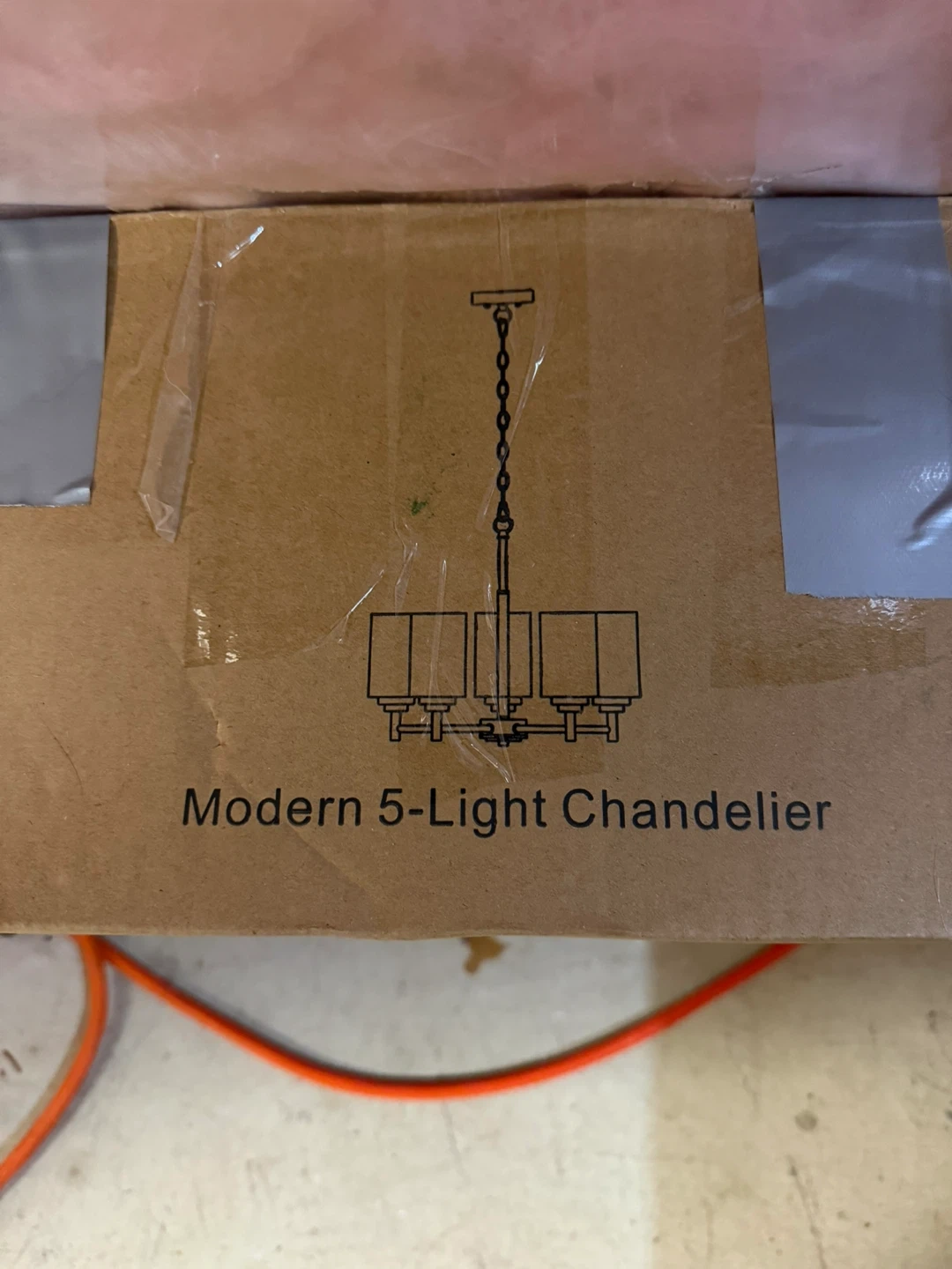 10Selling a modern 5-light chandelier. The product model is XY456. It's in great condition and comes in the original box too big for my living room selling both for 80