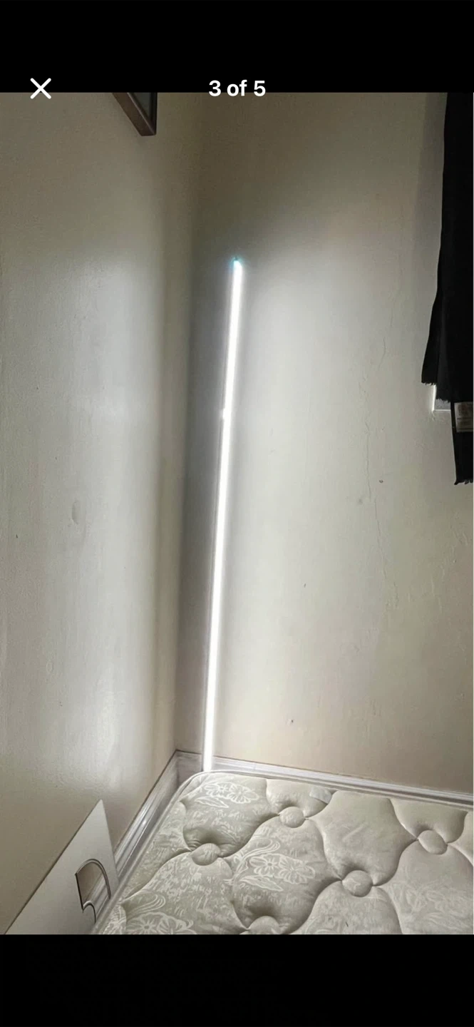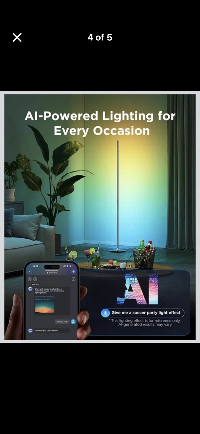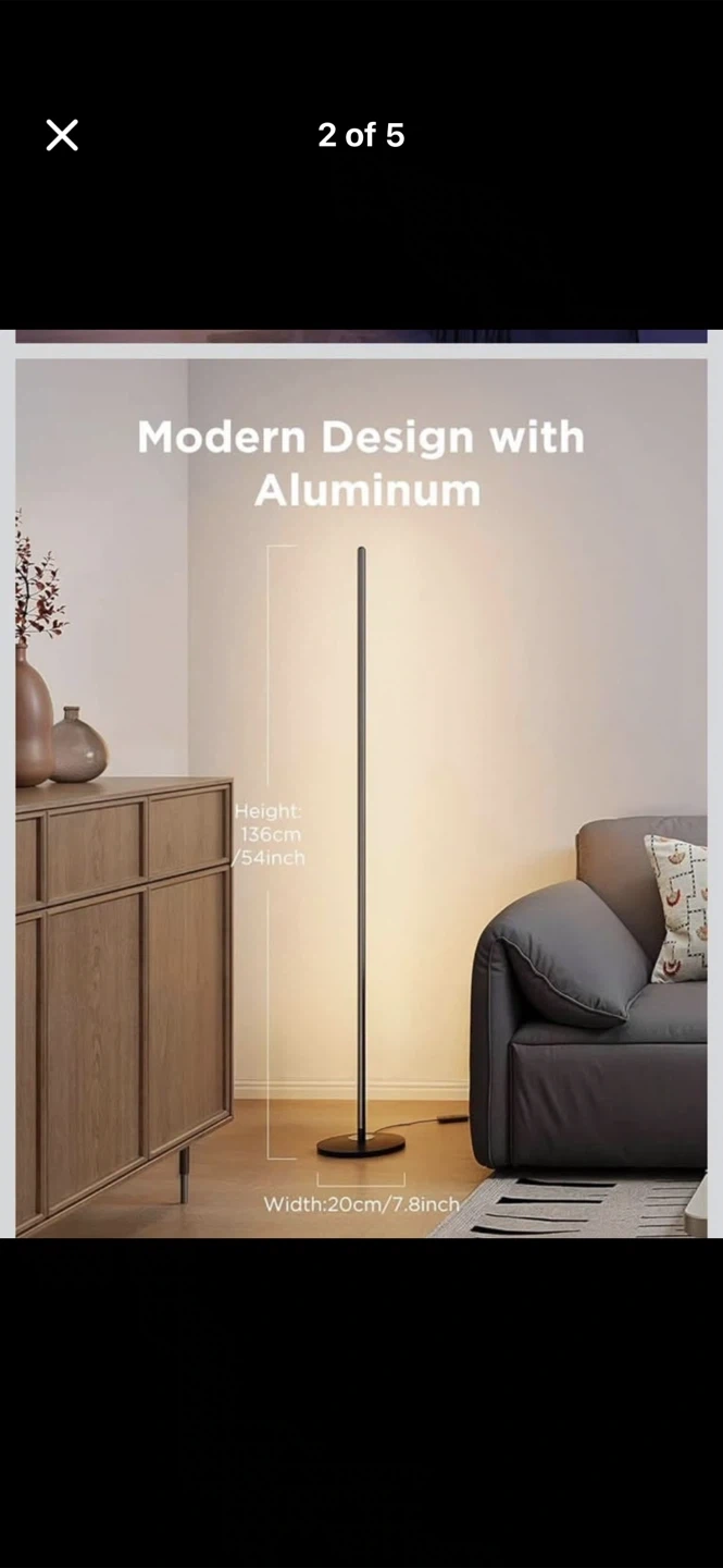Modern design floor lamp with aluminum build. It's 54 inches tall and has a width of 7.8 inches. It's AI-powered lighting for every occasion!