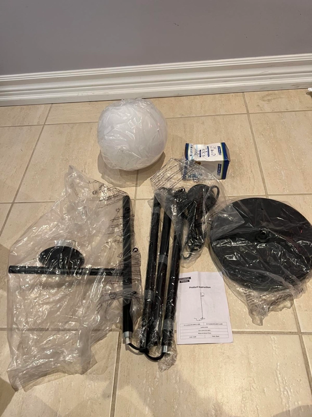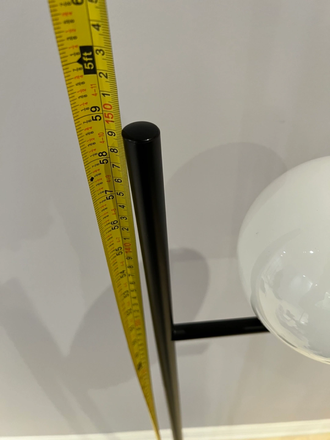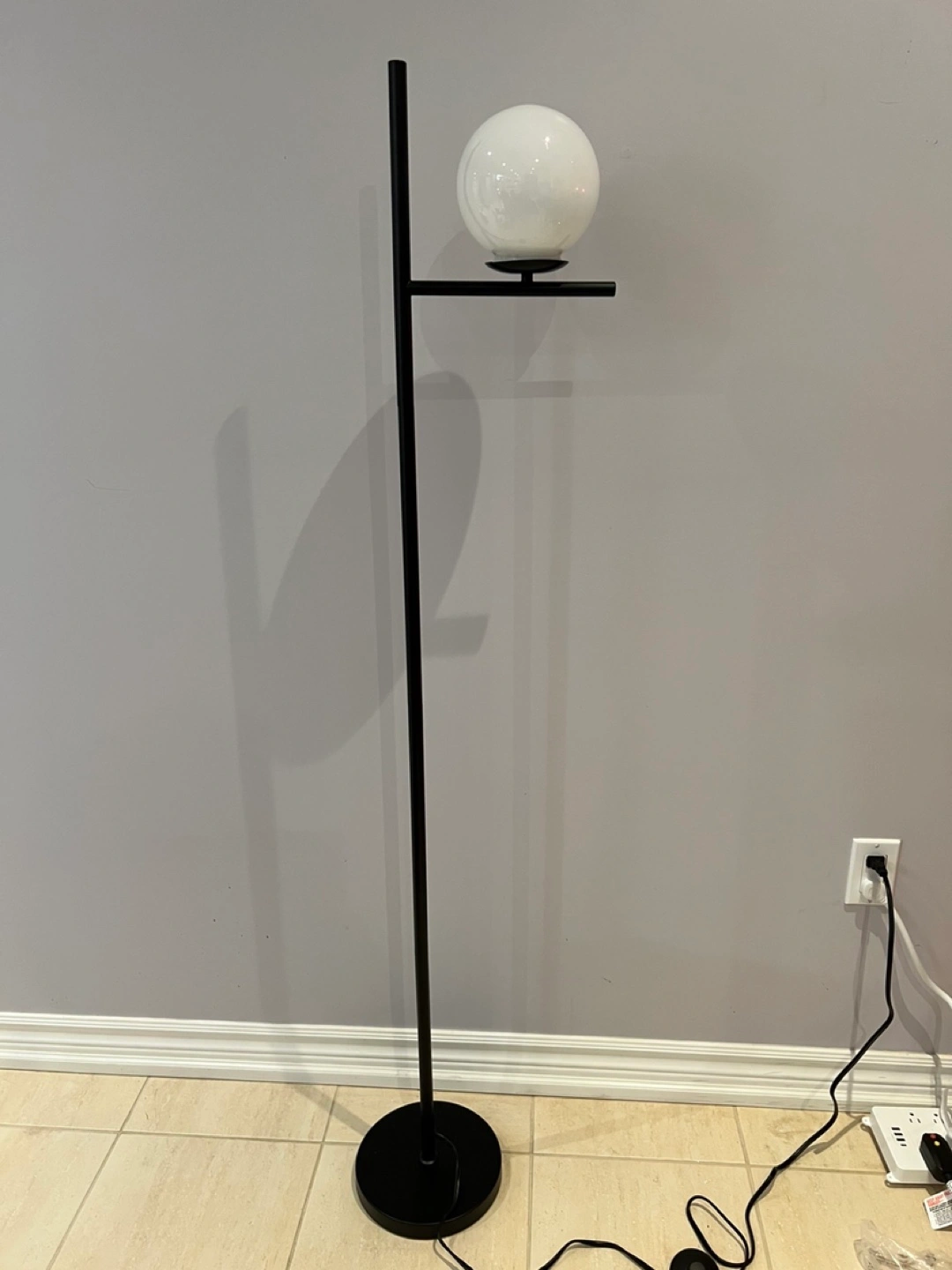 189Sleek minimalist design. Black metal frame. White opal glass shade. Easy assembly. Great for living room or bedroom.