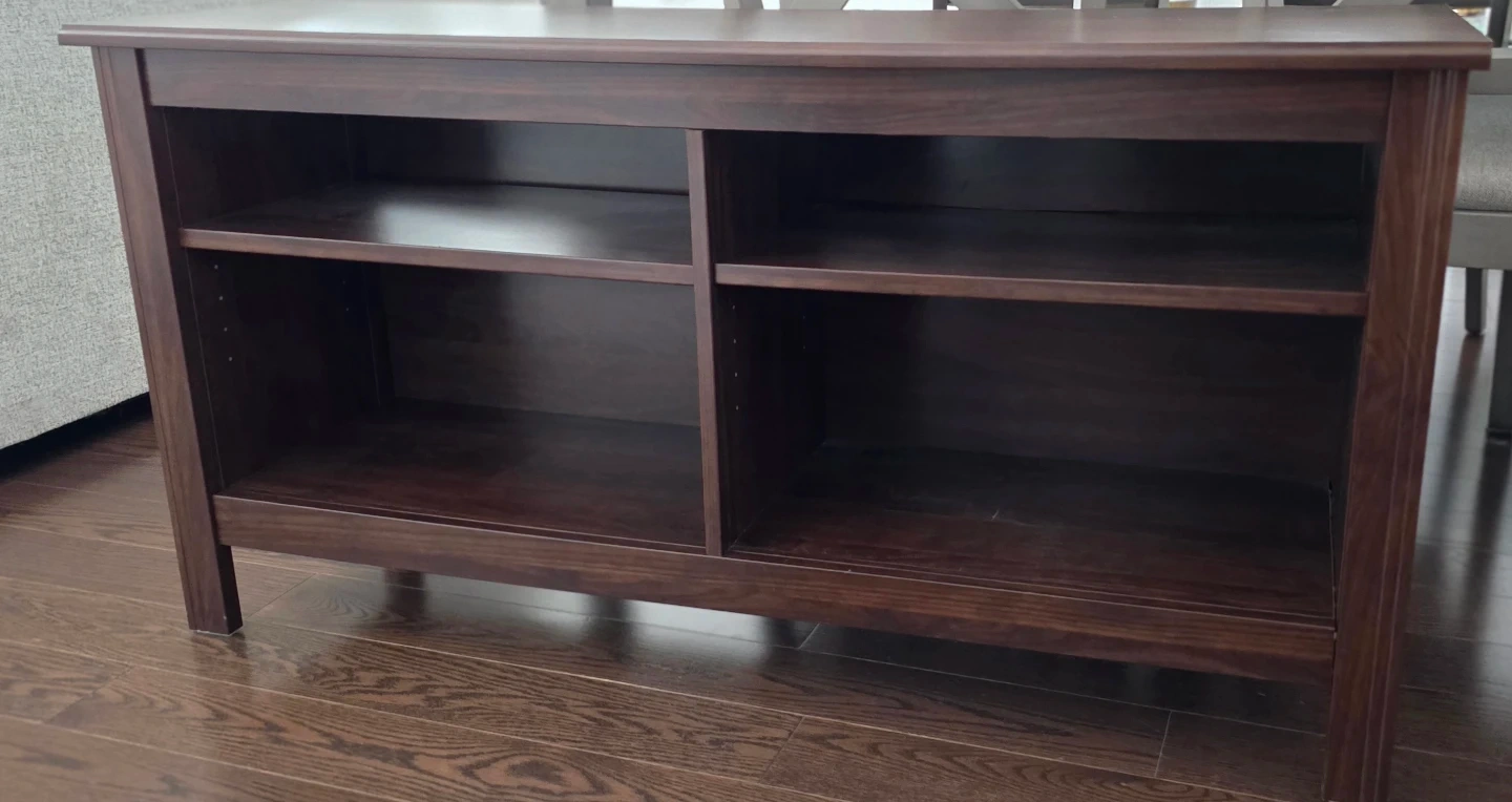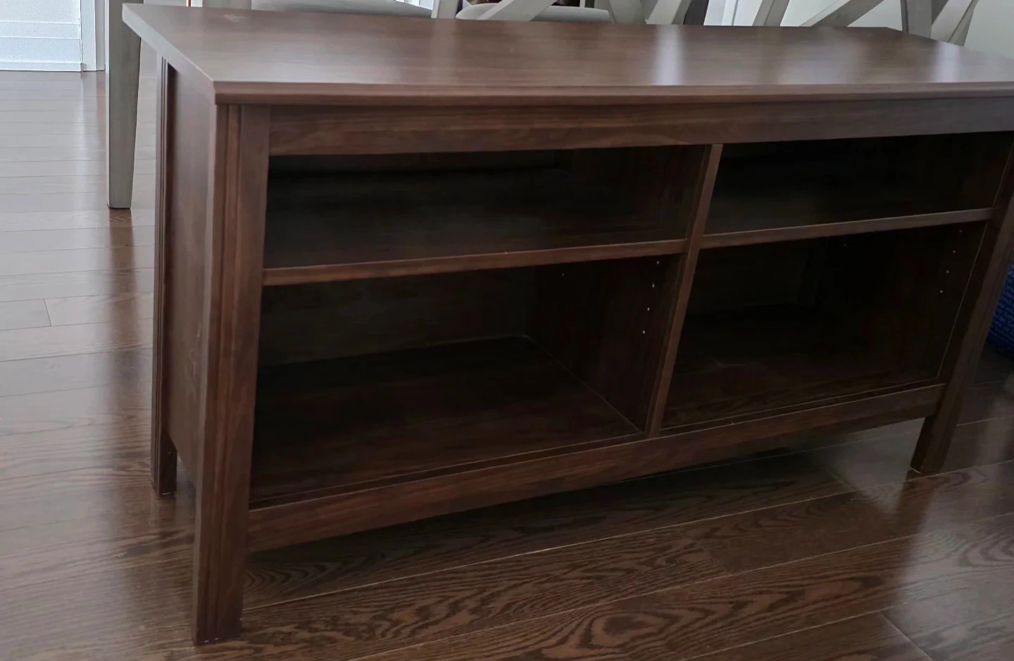 10Beautiful and sturdy dark brown TV stand from IKEA in excellent condition. Features: Adjustable shelves for flexible storage Smoke-free, pet-free home. Selling for $55. Pickup in Aurora. ✅ Ready to go