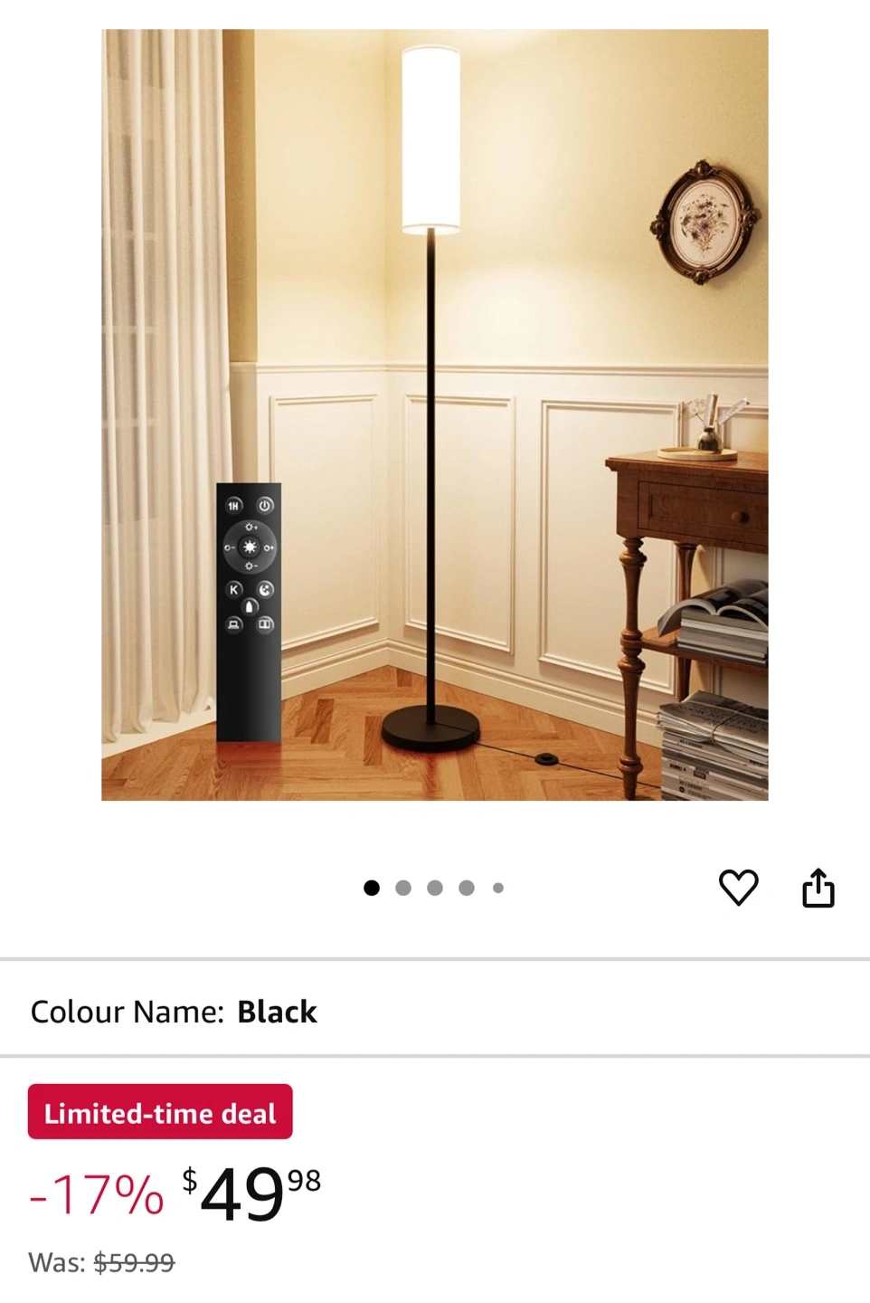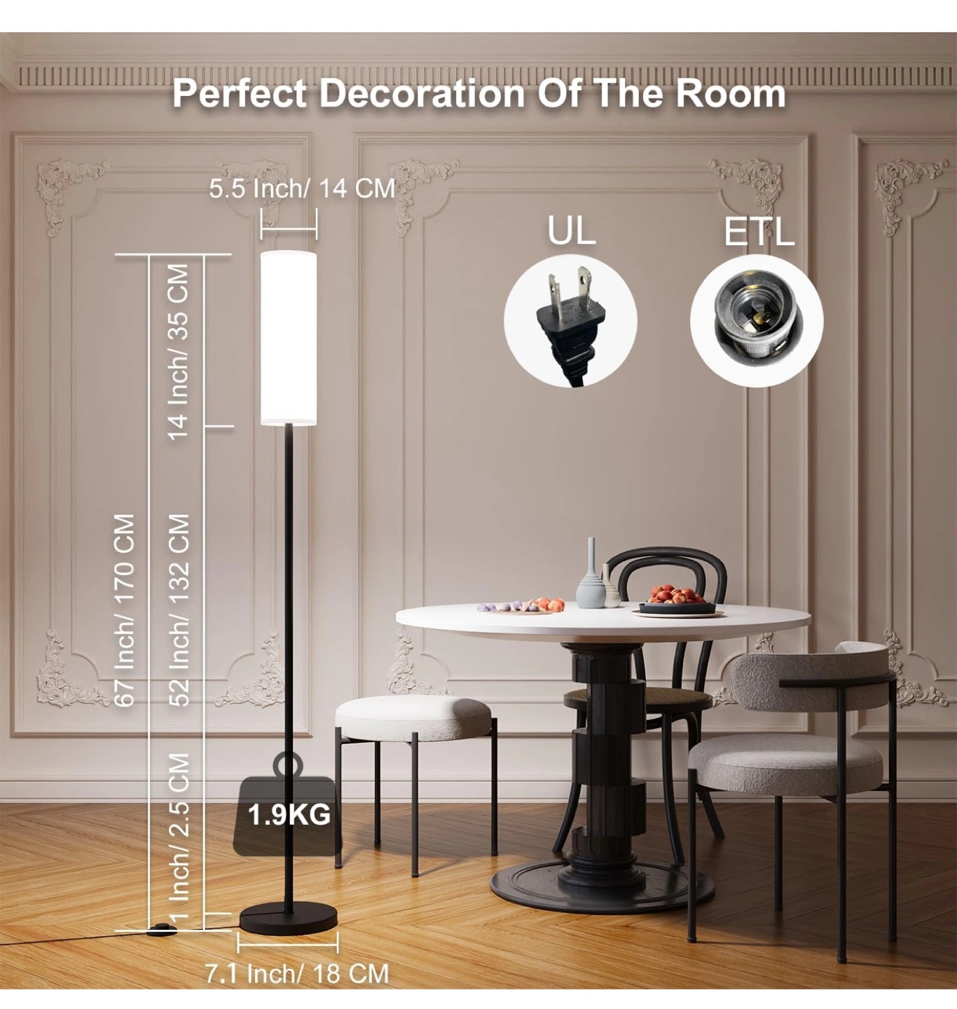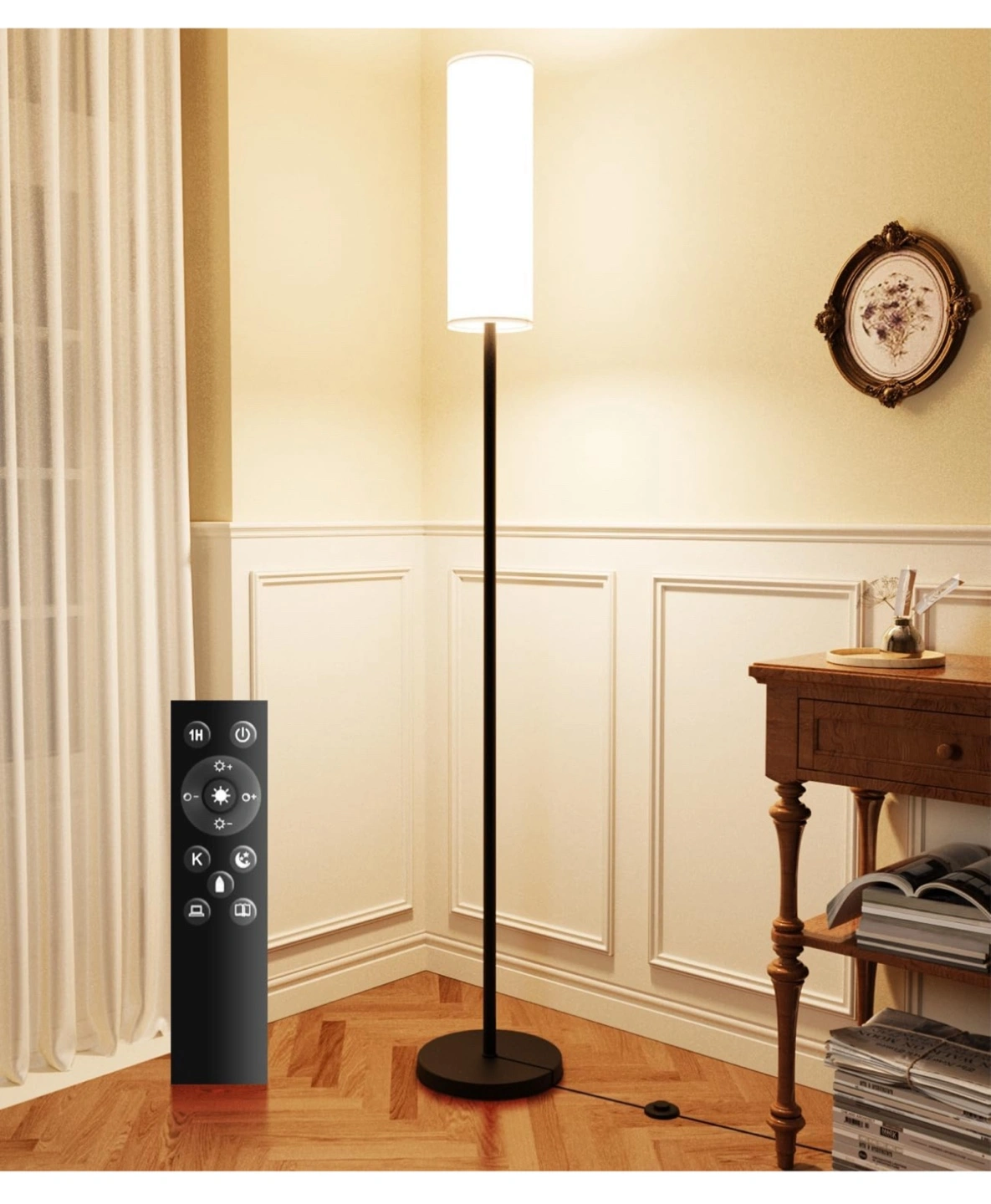 Looking to brighten up your space? This modern LED floor lamp is perfect for adding a touch of elegance to any room! It features: - Dimmable settings from 5% to 100% - Adjustable colour temperatures (Cool White, Neutral White, Warm White, Warm Colour) - A convenient remote control and foot switch for easy operation - A built-in 1-hour timer function It's lightweight and easy to move around at only 1.9kg. The lamp stands at 67 inches (170 cm) tall and has a base diameter of 7.1 inches (18 cm)