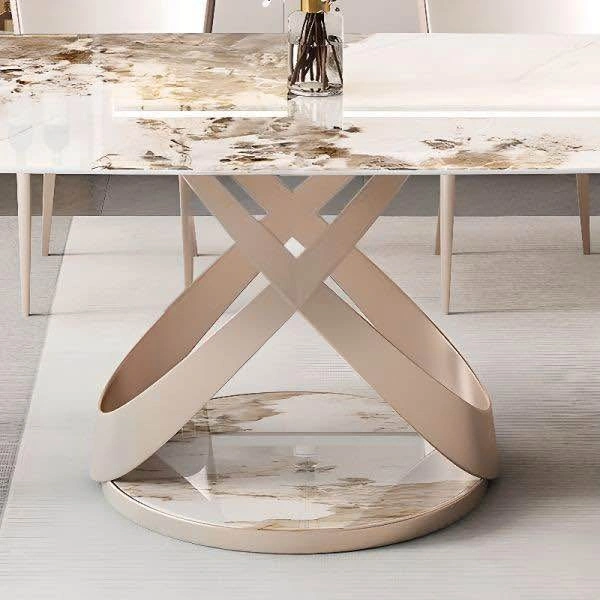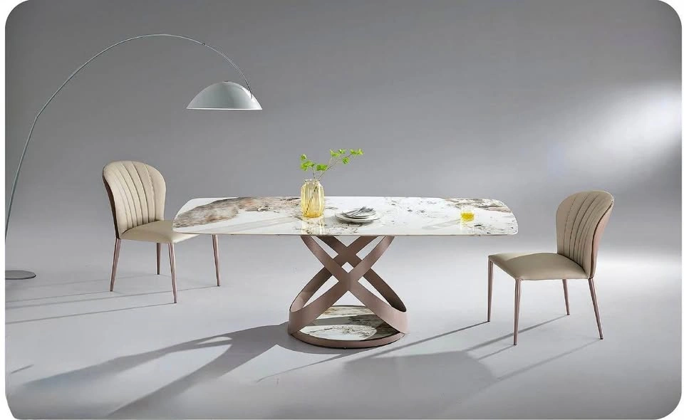 This is brand new. This modern dining table features an innovative design with a striking X-shaped base that adds a touch of modern artistry and becomes a true conversation piece. It's made with premium materials, featuring a sintered stone luxurious marble-like top with intricate veining, paired with a sleek metallic base for a sophisticated look. It has a minimalist charm with clean lines that complement a variety of decor styles, from modern to transitional, and is versatile for both everyday dining and special occasions, easily accommodating gatherings of all types. It’s built for durability and long-term use, and is easy to clean and maintain. Please note the price is for the dining table only. We also have matching dining chairs for this dining table. Feel free to message if you have any questions!