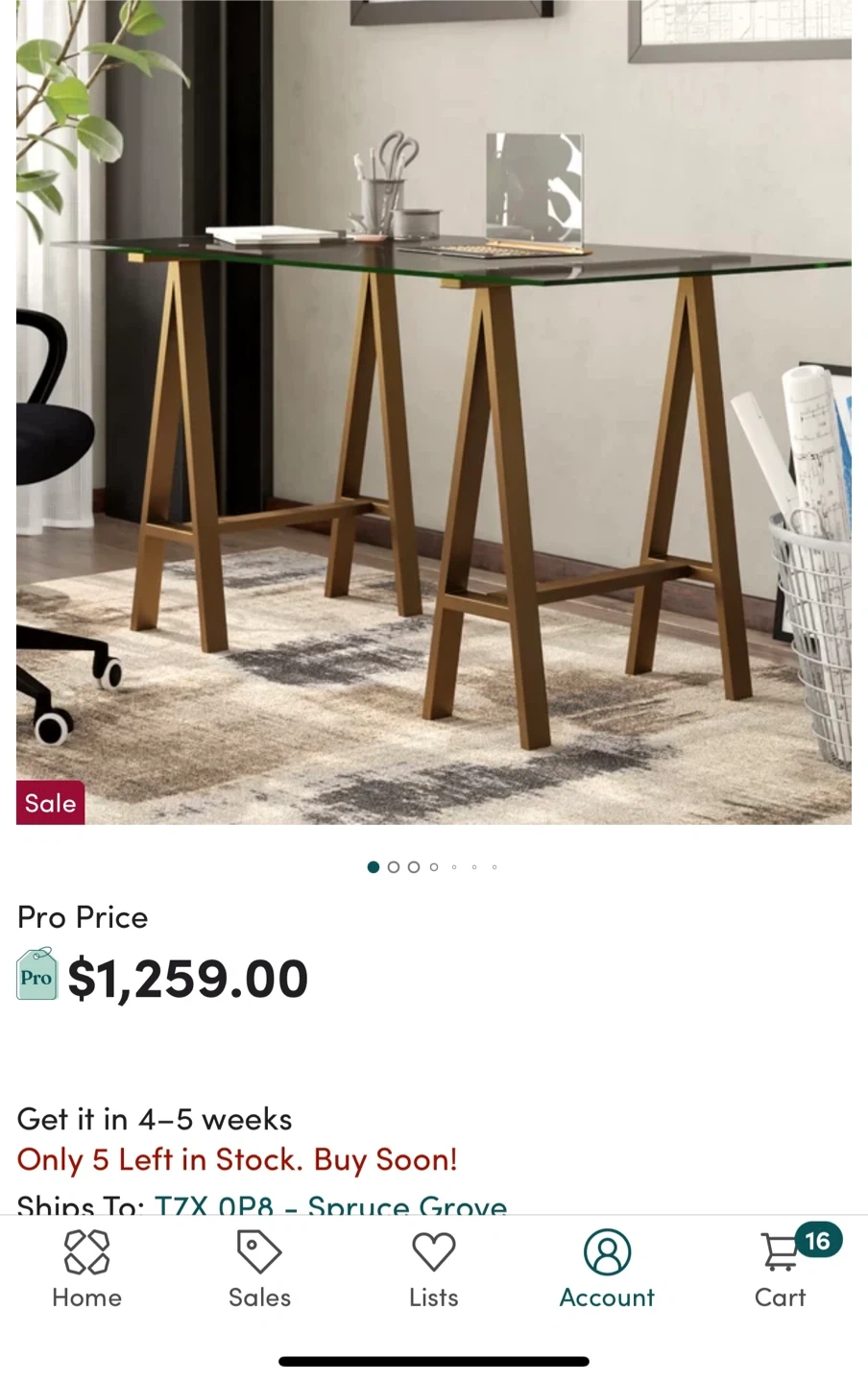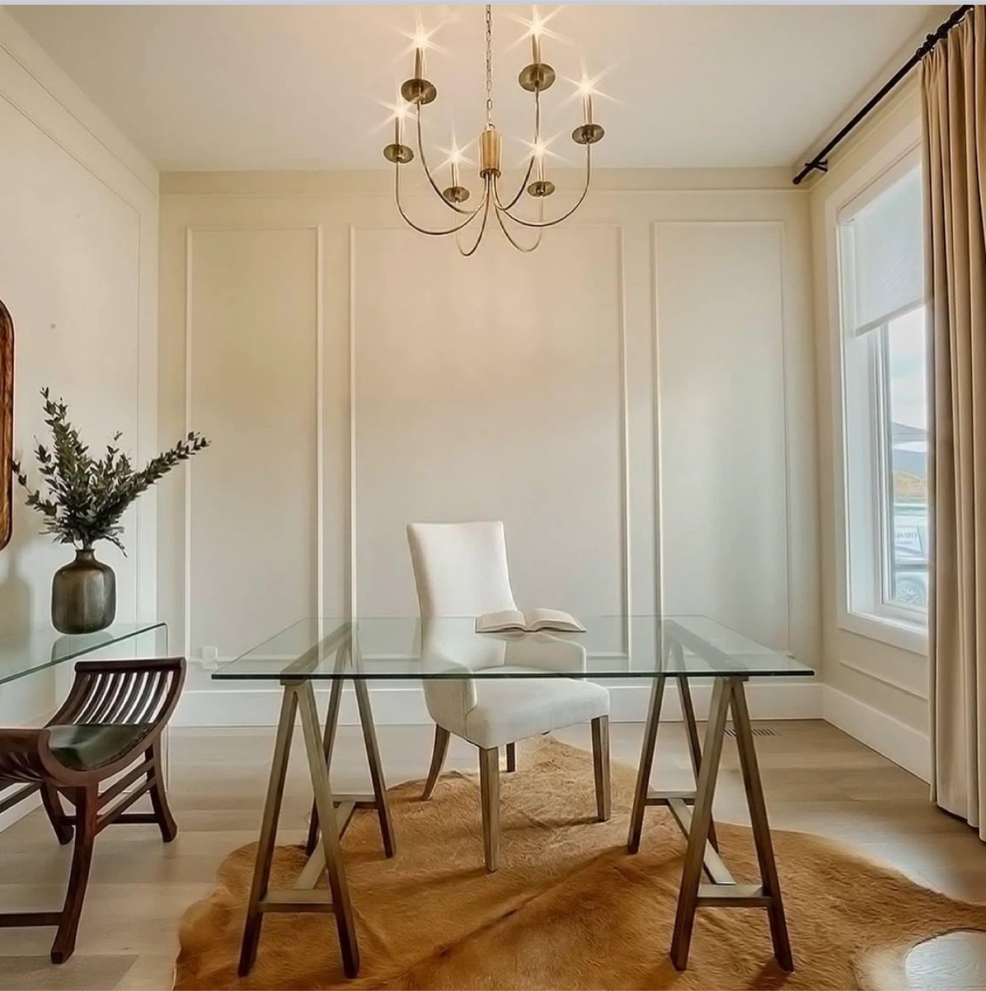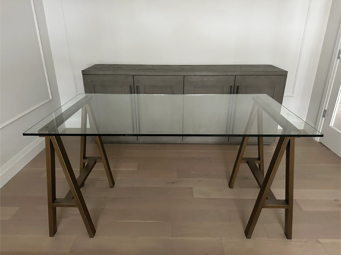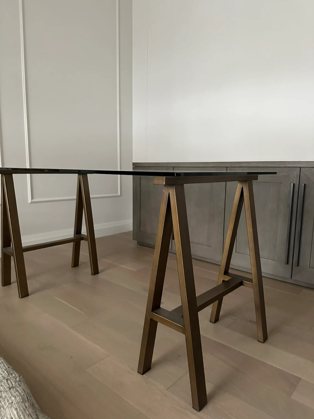 Modern Glass & Brass Trestle Desk