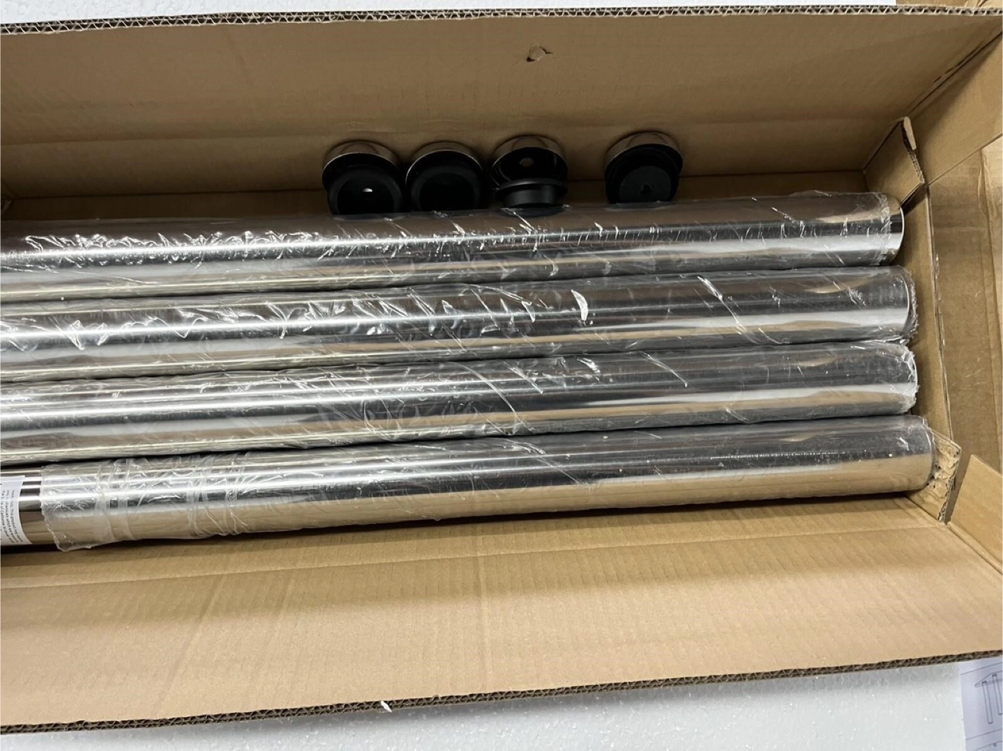 This dining table measures 43.3 x 27.6 x 28.9 inches (110 x 70 x 73.5 cm) and features an 8mm tempered glass top paired with a rust-resistant stainless steel frame. It supports seating for 4 people, ideal for small dining spaces. The tempered glass surface is smooth and easy to clean, while the sturdy steel frame ensures durability and a long service life.