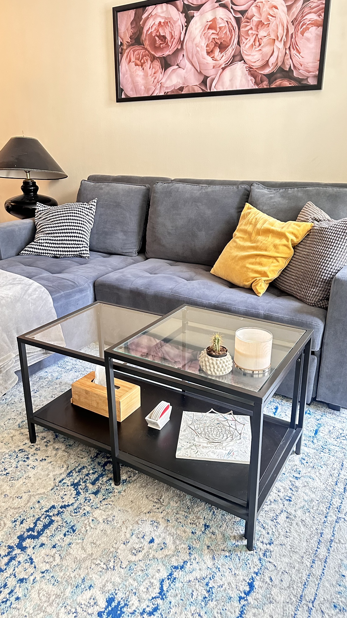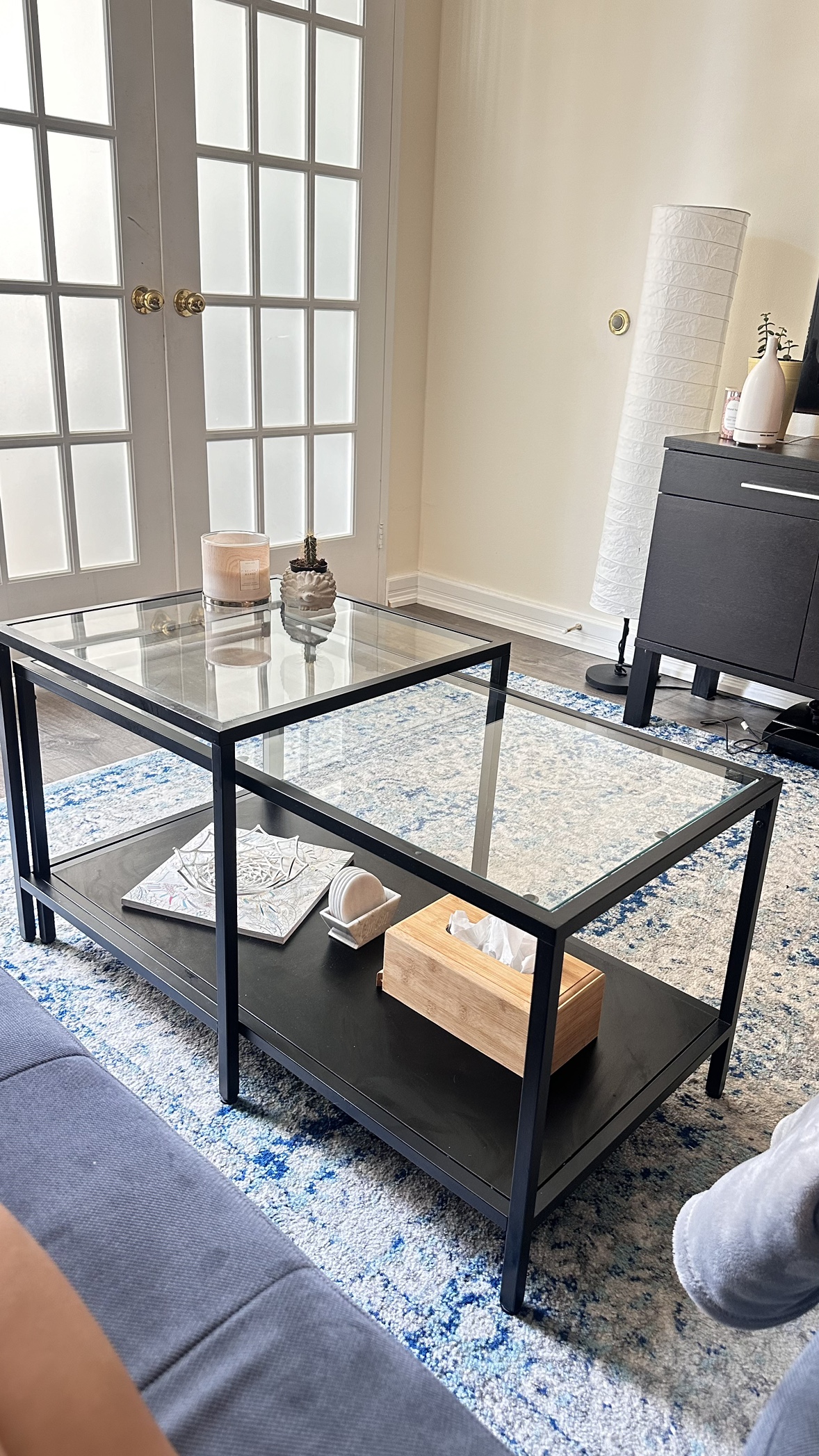 37MOVING SALE Black IKEA Vittsjo glass nesting coffee table in great, like-new condition. Elevates any living space and perfect for hosting as it expands for more space. 92 cm x 45 cm x 50 cm (at its most compact) Purchased for over $100 retail, asking for $60. Pick up from University and Dundas by August