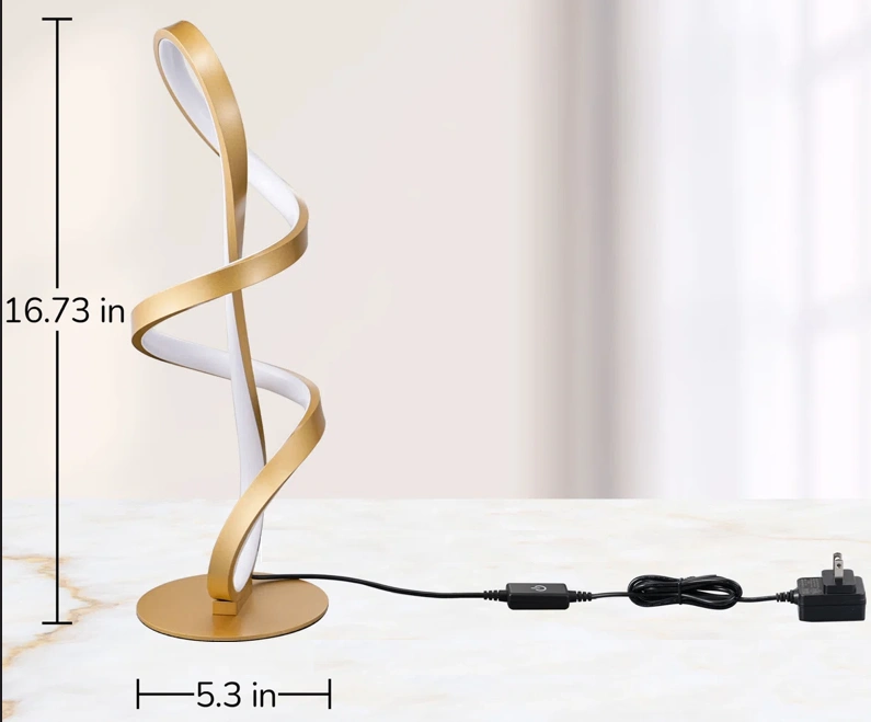 60- Brand new modern spiral loop table lamp in gold - Retail $90 (+tax = $102). Selling for $60 — save $42 - Bright 500-lumen LED with 3 color modes: 3000K / 4500K / 6000K - Dimmable 10%–100% with touch control - Sleek aluminum design, perfect for a desk or bedside - Compact size: 16.73" H x 5.3" W x 5.3" D