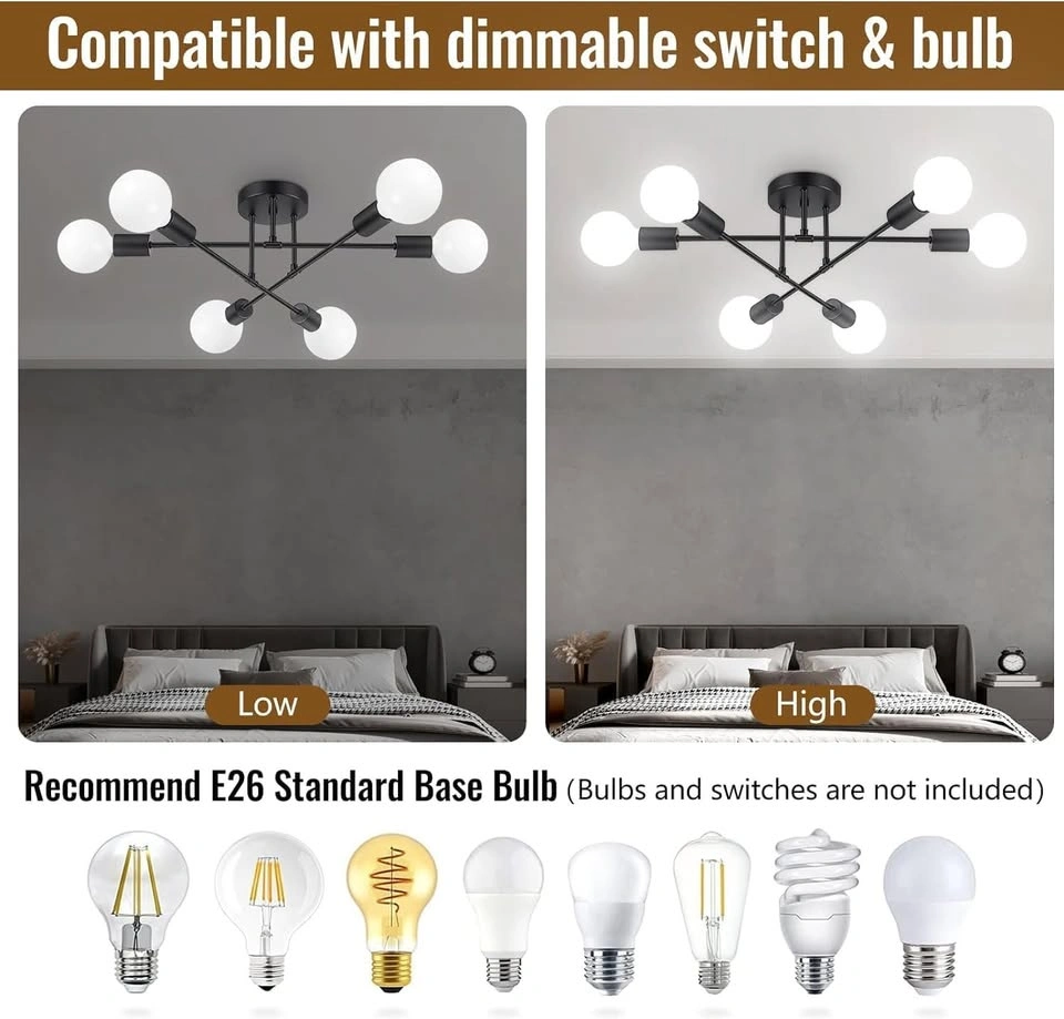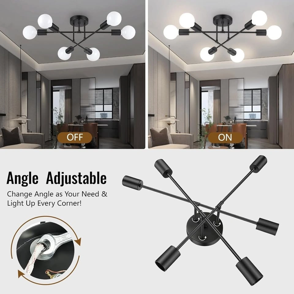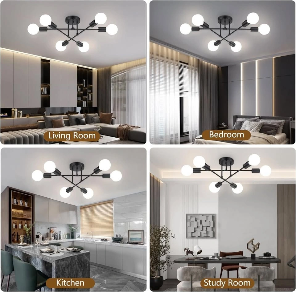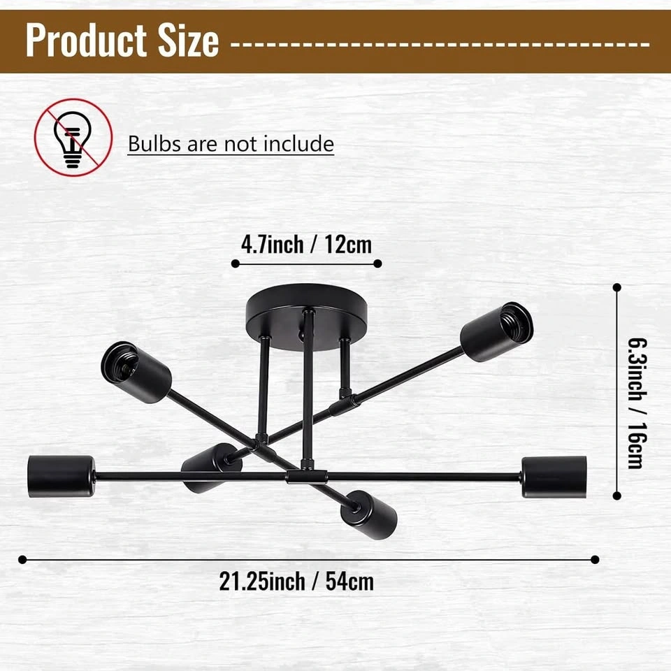 1012 colors: gold and black. Crafted from high-quality iron, this Semi-Flush Mount Ceiling Light features a unique geometric design with three open metal wire cages, creating a striking industrial aesthetic. Each cage holds a bulb, providing ample illumination while adding a touch of elegance to your space. This fixture requires hardwiring and includes all necessary mounting hardware for quick and easy installation. The open design of the metal wire cages allows for convenient bulb installation from the bottom. The ceiling light is equipped with three heat-resistant E26 sockets (bulbs not included), compatible with LED, incandescent, CFL, and halogen bulbs. It also supports dimming functionality, allowing you to adjust the brightness and create a cozy atmosphere (dimmable bulbs and dimmer switch sold separately). Versatile and stylish, this farmhouse ceiling light complements various interior designs and can be installed in multiple locations such as hallways, foyers, bedrooms, kitchens, offices, and commercial spaces like bars, restaurants, hotels, and shops.