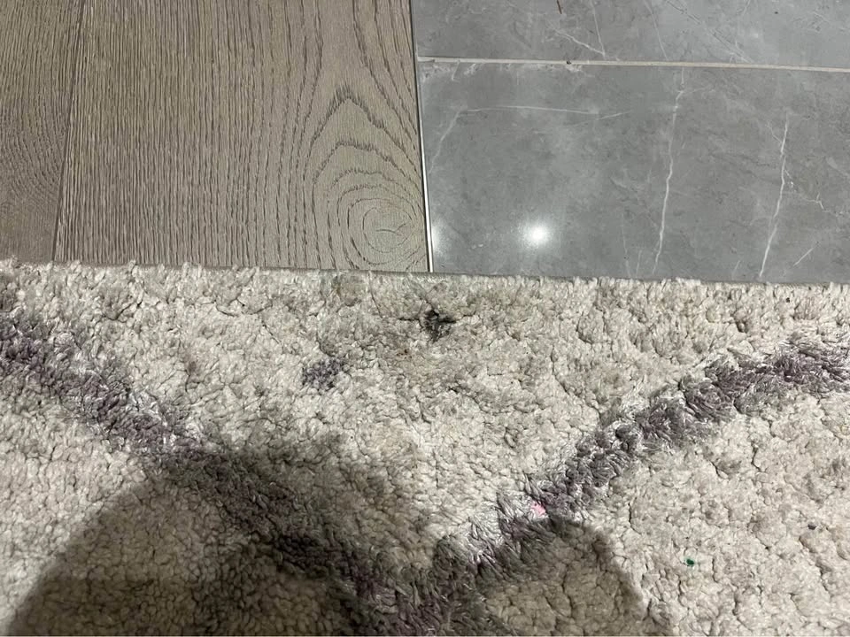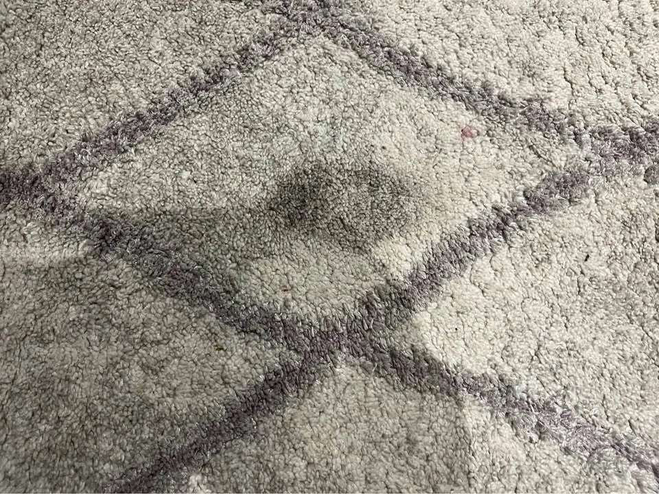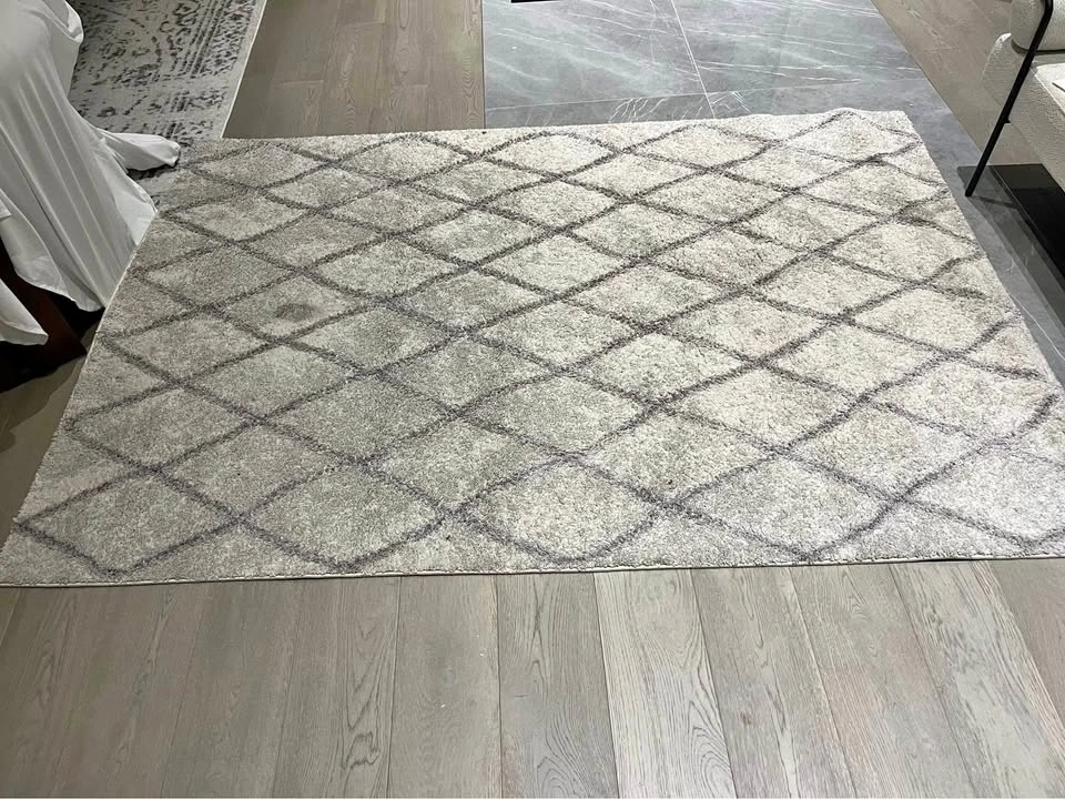 Modern rug Soft and high pile 5.5’x7.5’ Colour: light gray and purple It has never been washed . It has two small stains.