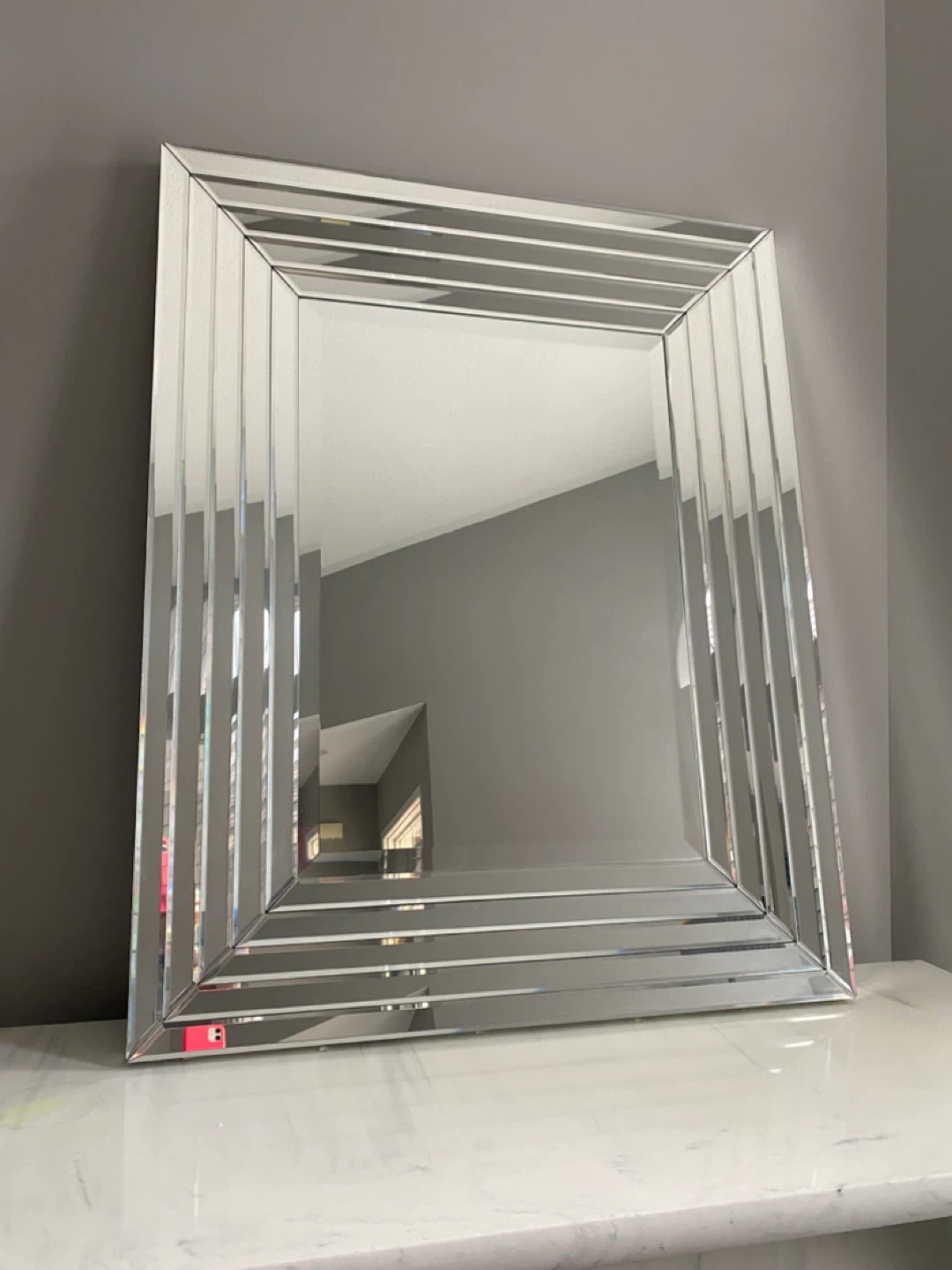 5Selling a stylish square mirror with a beveled edge design. It's in great condition and would look lovely in any room. The mirror has a modern aesthetic that can complement various decor styles. It's ready to bring a touch of elegance to your home!