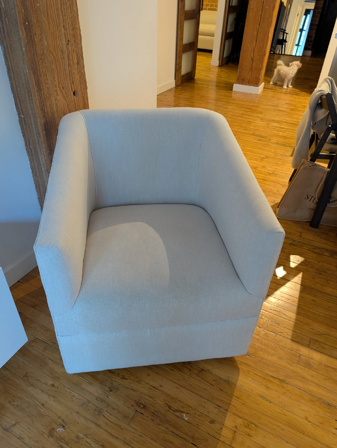 Selling a comfy modern swivel armchair in light beige. It's in great shape and would look great in any living room or bedroom! It’s perfect for adding a touch of style and comfort to your space