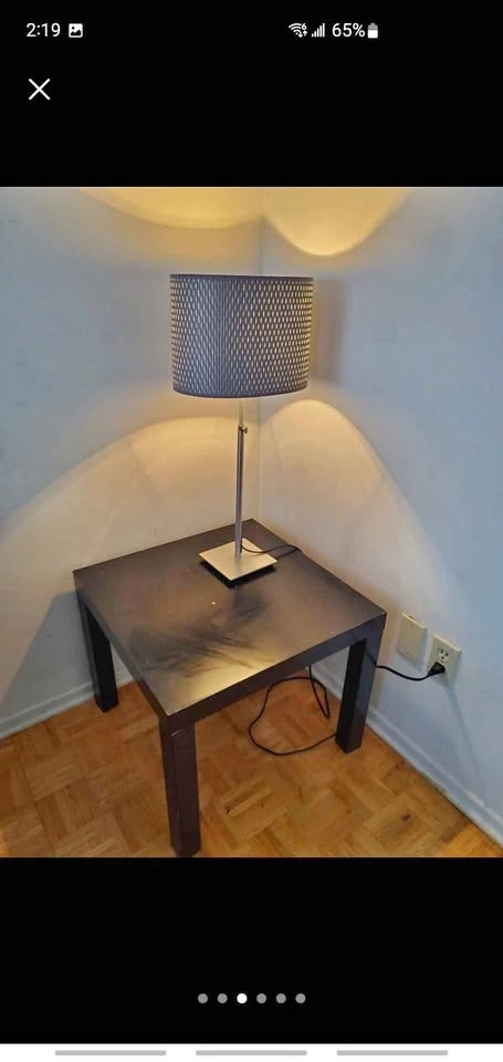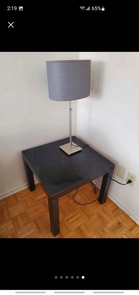 Simple and stylish set — perfect for a bedroom, living room, or study corner. The lamp gives off warm, cozy lighting and sits perfectly on the compact IKEA side table. Includes: Modern table lamp with woven-pattern shade (works perfectly, bulb included) IKEA Lack side table (55 × 55 × 45 cm) – sturdy and lightweight ✅ Lamp: Brushed metal base, clean design, great condition ✅ Table: Black-brown color, minor wear but solid ✅ Both items clean and fully functional 💰 Price: $35 for both (or $25 for lamp / $15 for table individually)