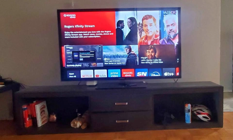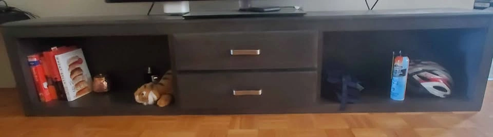 Stylish TV unit in great condition — modern look with practical storage. Made in Vietnam (Model B476-69 Kingcal King Storage HDB). Features: 2 spacious drawers with sleek metal handles 2 open side shelves for books, décor, or media devices Smooth dark wood finish Lightweight yet sturdy, easy to move around Fits TVs up to ~65” ✅ Excellent condition ✅ Perfect for apartments or small living spaces 📏 Approx. size: 72” L × 20” H × 18” D 💰 Price: $50 📍 Pickup Nepean