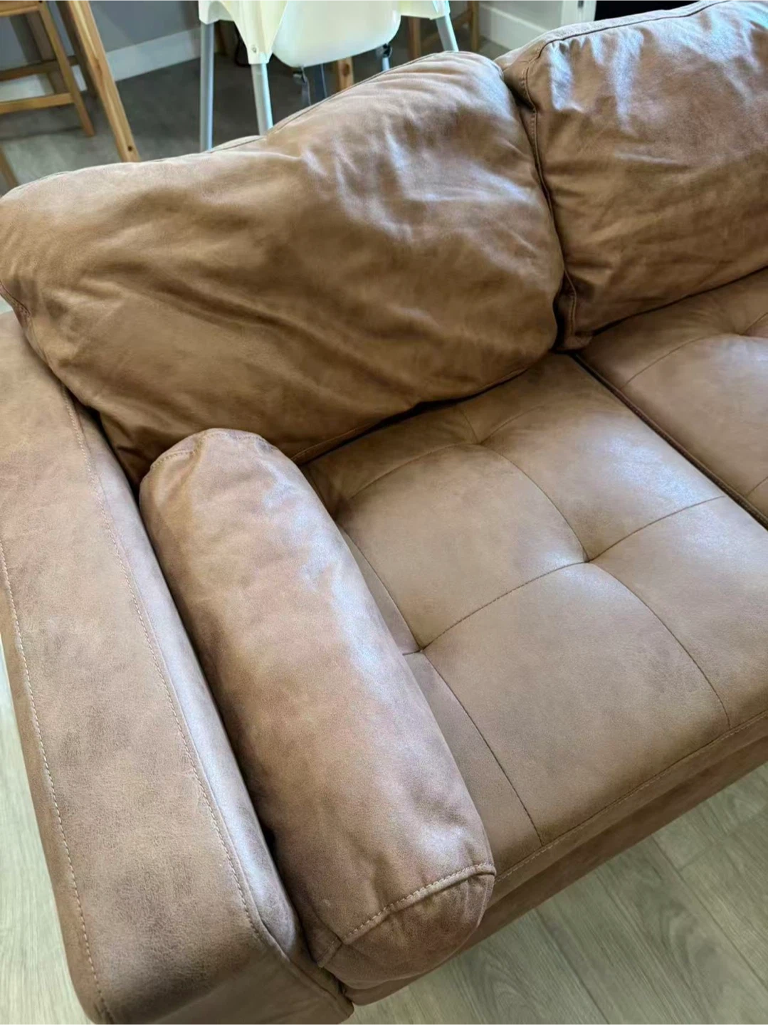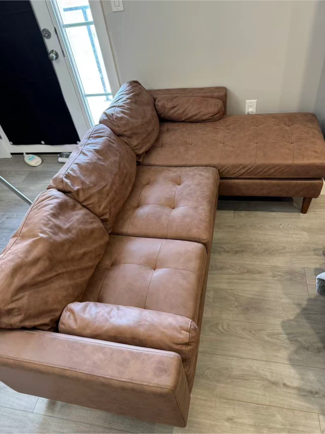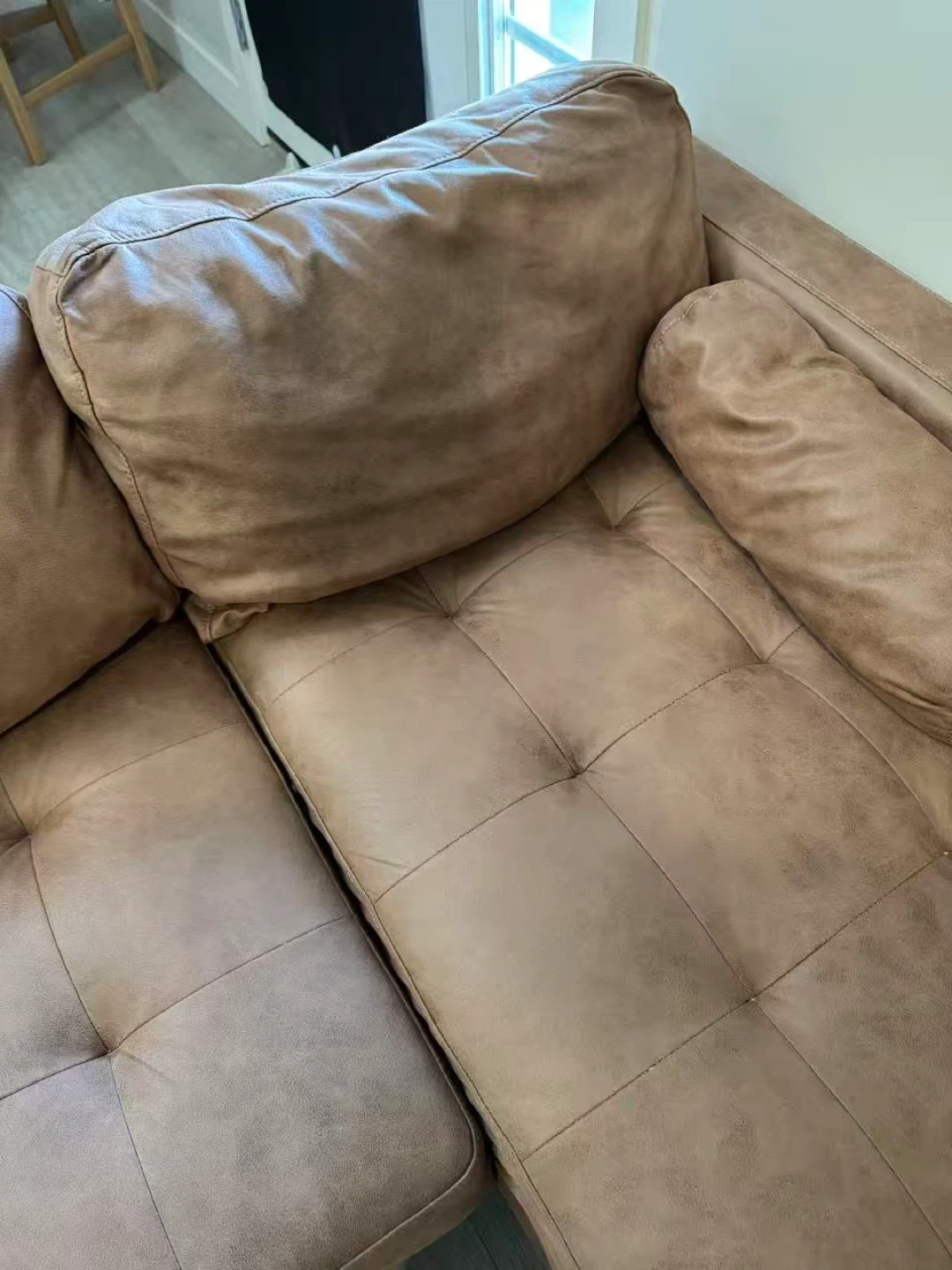 Moving sale, bought less than 1 year, no pets in the house. Great condition, brown leather surface, can switch sides. Easily transportation. Pick up only. Cash only.