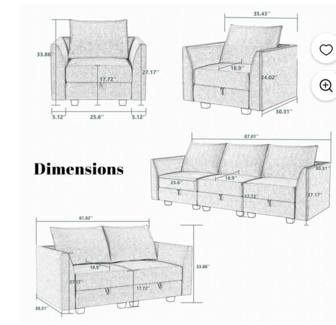 features:. 1. make any shapes you want ( sofa, corner coach, love seat, selarate arm chair) 2. each seat ia a storage 3. when seats joined, can turn into bed 4. without handles any seat can be used as ottoman