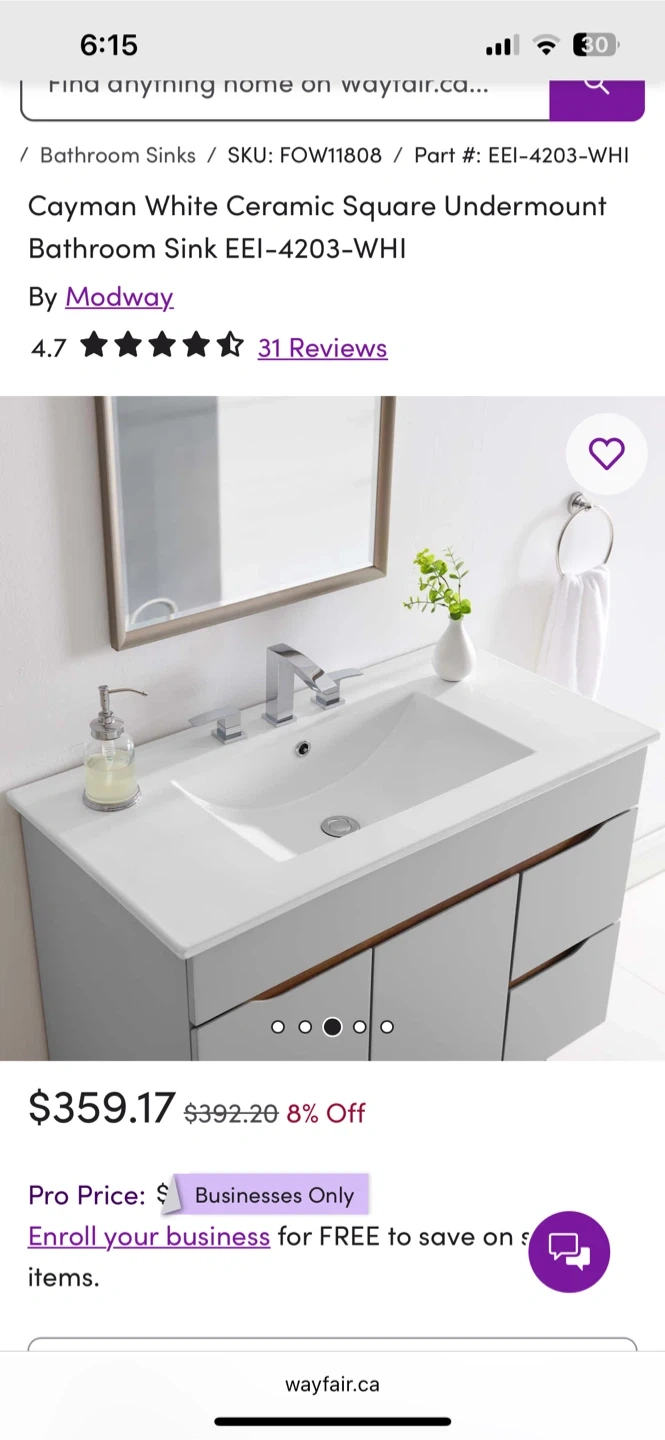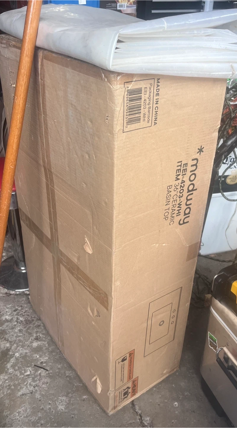 10Selling a brand new Modway Cayman White Ceramic Square Undermount Bathroom Sink Top, still in its original box! This is the EEI-4203-WHI model, measuring 36 inches. Originally bought for $359.17. It's a beautiful ceramic piece ready to upgrade your bathroom! Pick up islington and the 401 Cash