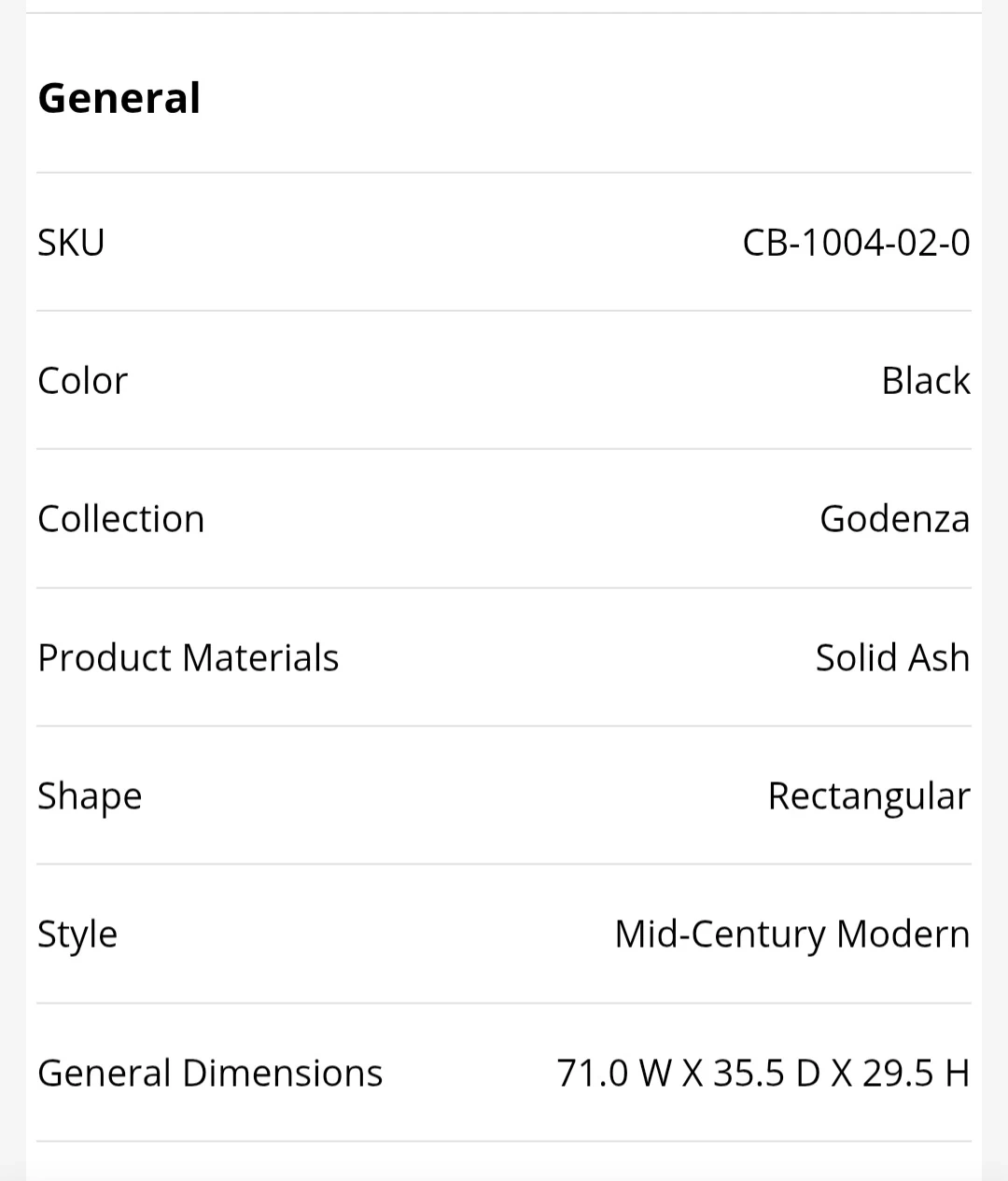9871.5 x35.5 x 29.5 Selling a sleek black Godenza Black Ash dining table by Moe's Home Collection. It features a modern design with unique leg supports. Perfect for a contemporary dining space!