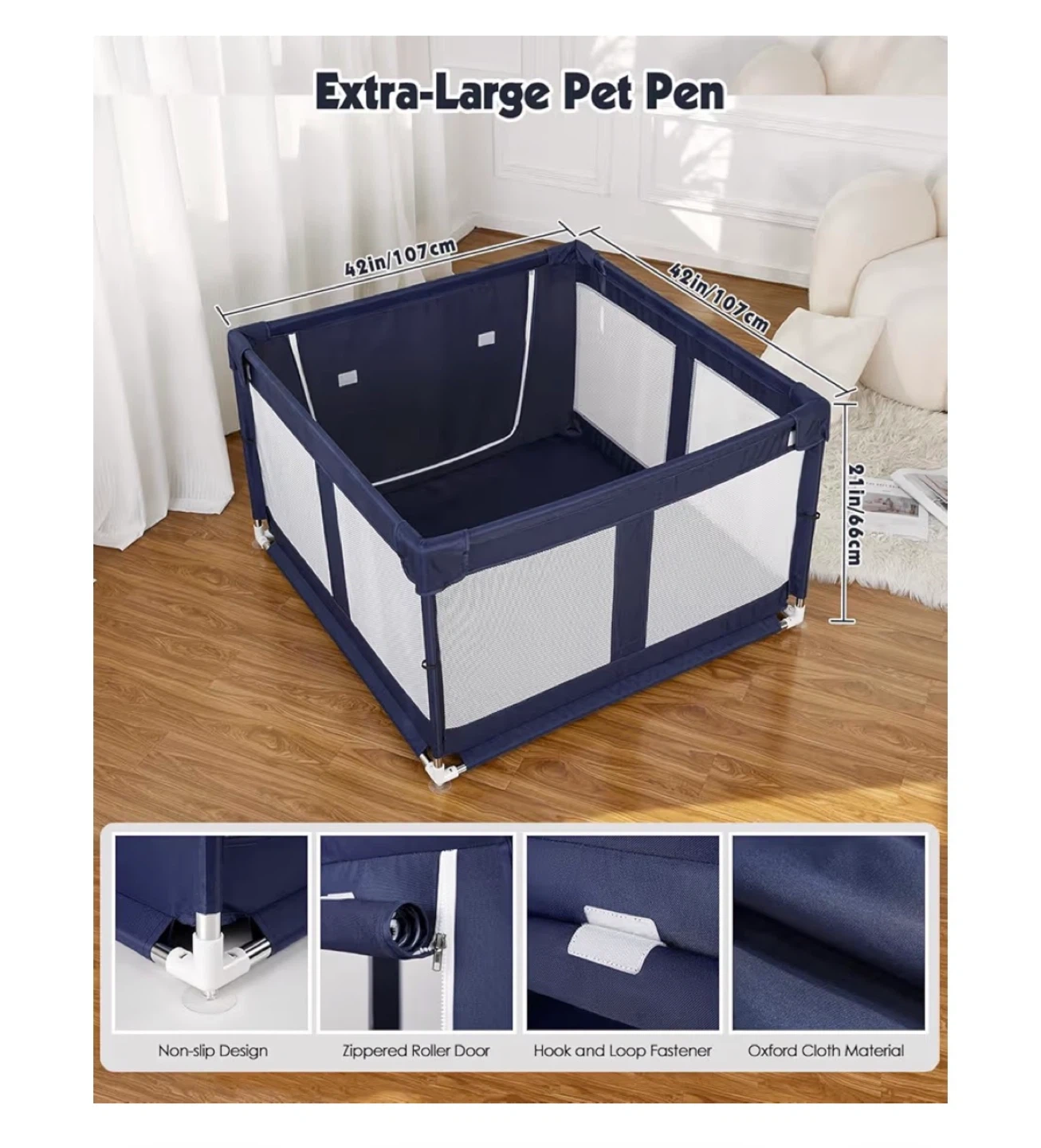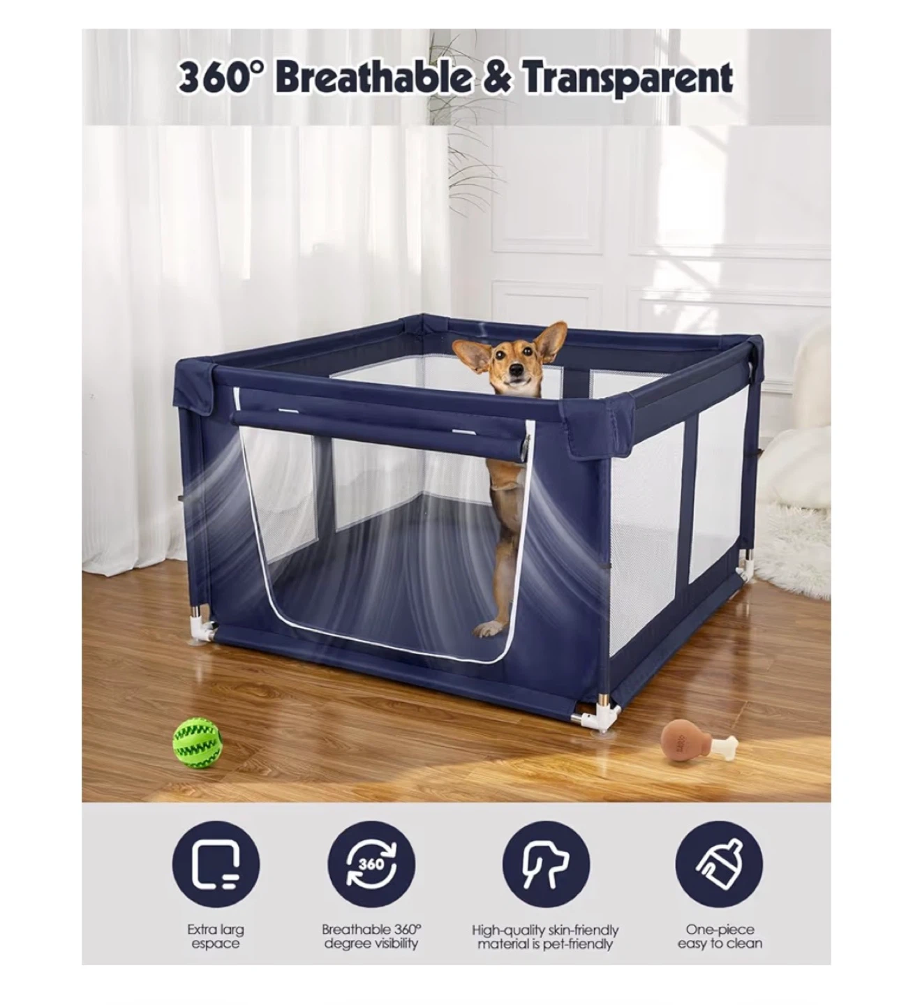 Selling a 42” x 42” x 26” dog playpen with gate, perfect for puppies or small dogs. It works well both indoors and outdoors and gives your pet a safe, comfortable space to play without feeling confined like they would in a crate.