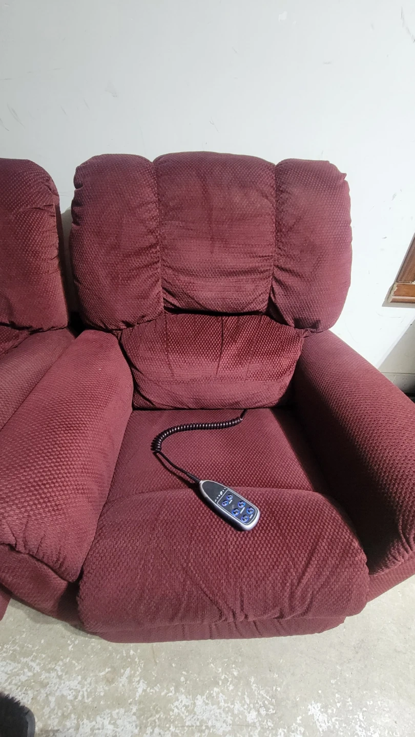 Selling 2 x Burgundy Colored Cloth LaZBoy Brand Electronic Rocker Recliners in Excellent Clean Condition.