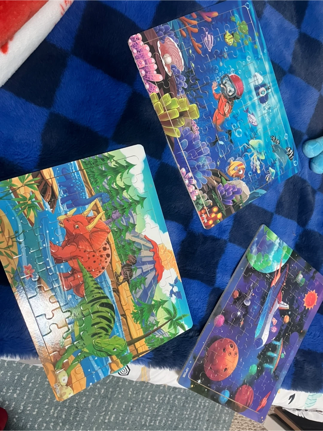 Kids puzzles in good condition. The animal puzzle is in French and English, the vehicles one makes noise.