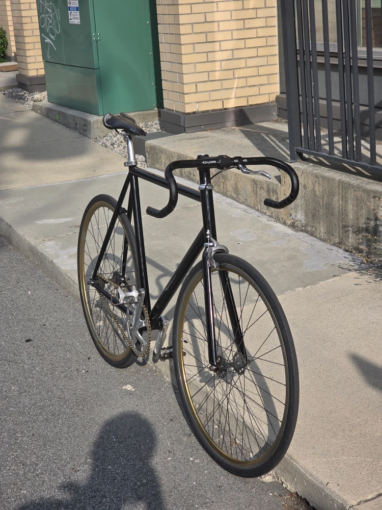89**Pick up only near Ontario and SW Marine Dr.** No, I will not provide my address until a day before our scheduled meeting; please do not ask for my address before we confirm our meeting time. No, I will not deliver or meet you anywhere more than 50m away from my location. Description: - Size 57 cm (TT 57.5 cm, ST 57 cm); recommended rider height 5' 11" to 6' 2" - Gear ratio 52x18t - Great as a single speed city commuter - Very bomb proof set up - Built with new tires, chain, crankset, and BB - Drive train is very stiff and responsive - Frameset is by local brand Moja and was used at Burnaby velodrome as a rental bike - Convertible to fixed gear, but will need additional fixed lockring to secure cog in place - All in good working condition and ready to ride! Specs: - Moja steel fixed/single speed frameset 58 cm - IRO golden wheelset - Skeace Hollowtech crankset - Miche 52t chainring - KMC single speed chain golden - CST Czar 700x28c tires - Axiom anatomical handlebars - Sora front caliper - Toqquz sealed bearing headset Price: - $249 obo - Will consider trades for bike-related items - Payment in cash or e-transfer