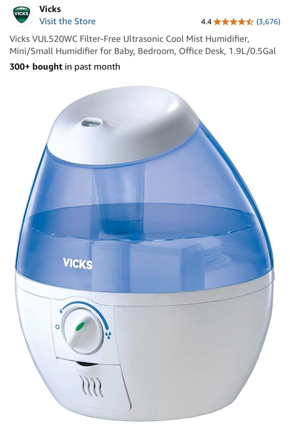 Vicks VUL520WC Filter-Free Ultrasonic Cool Mist Humidifier, Humidifier. Perfect for baby’s room, bedroom, living room, or office desk, 1.9L/0.5Gal. Excellent condition.